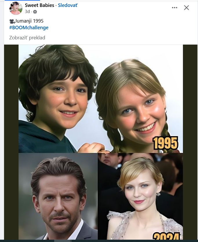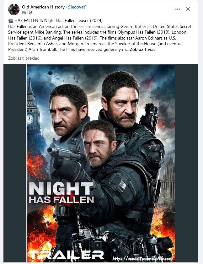 Často sme sa, podobne ako vyššie uvedený zdroj, stretli s rôznymi upútavkami na nový film alebo seriál. Najmä v skupinách zameraných na filmové novinky. Obrázky generované AI, v ktorých je množstvo chýb a sú jasne odhaliteľné – napriek tomu sa snažia vyvolať dojem, že ide oficiálny plagát pripravovanej novinky.