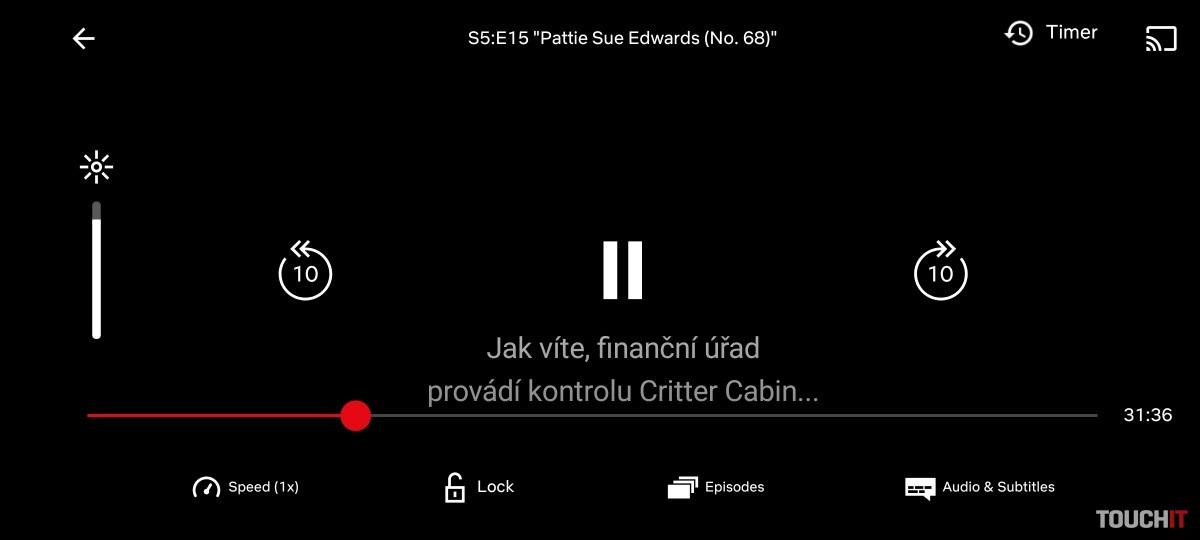 Každopádne obrazovka s ovládacími prvkami sa postupne plní. Teraz najnovšie časovačom, ktorý vypne sledovaný obsah o 15, 20 alebo 45 minút, prípadne po odohratí epizódy. Je to pravdepodobne je to doplnková ochrana proti neustále rozsvietenému displeju. Nakoniec aj ochrana proti pokračovaniu nasledujúcich epizód seriálu. Na základnej obrazovke aplikácie sa displej vypne podľa nastavenia Androidu. Pri sledovaní obsahu sa displej nevypne a zostane svietiť a ak má seriál pokračovanie, začne sa prehrávanie jeho ďalšej epizódy. Tu by sa dala využiť funkcia časovača, ktorá by to zastavila. Ak nezaspíte, Netflix si vypnete sami. Naopak, keď zaspíte, Netflix nebude vybíjať váš smartfón púšťaním ďalších a ďalších epizód. Túto funkciu chápeme ako doplnkovú ochranu, keďže Netflix stačí vypnúť tlačidlom na vypnutie displeja / telefónu. Vtedy sa prehrávanie pozastaví a zapamätá sa pozícia sledovaného obsahu. Je to najrýchlejší spôsob, ako pozastaviť prehrávanie Netflixu. Ak by ste totiž stlačili tlačidlo domovskej obrazovky, zobrazí sa plávajúce okno a obsah sa bude prehrávať ďalej. Prečítajte si aj: https://staging.touchit.sk/netflix-si-pozriete-rychlejsie-aj-na-webe/324132Podobné články