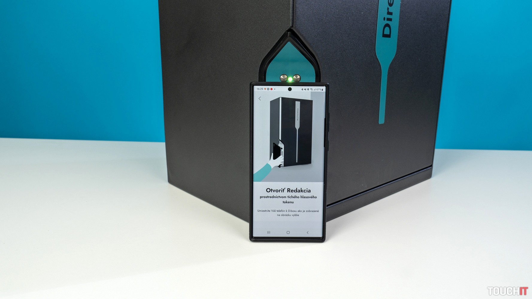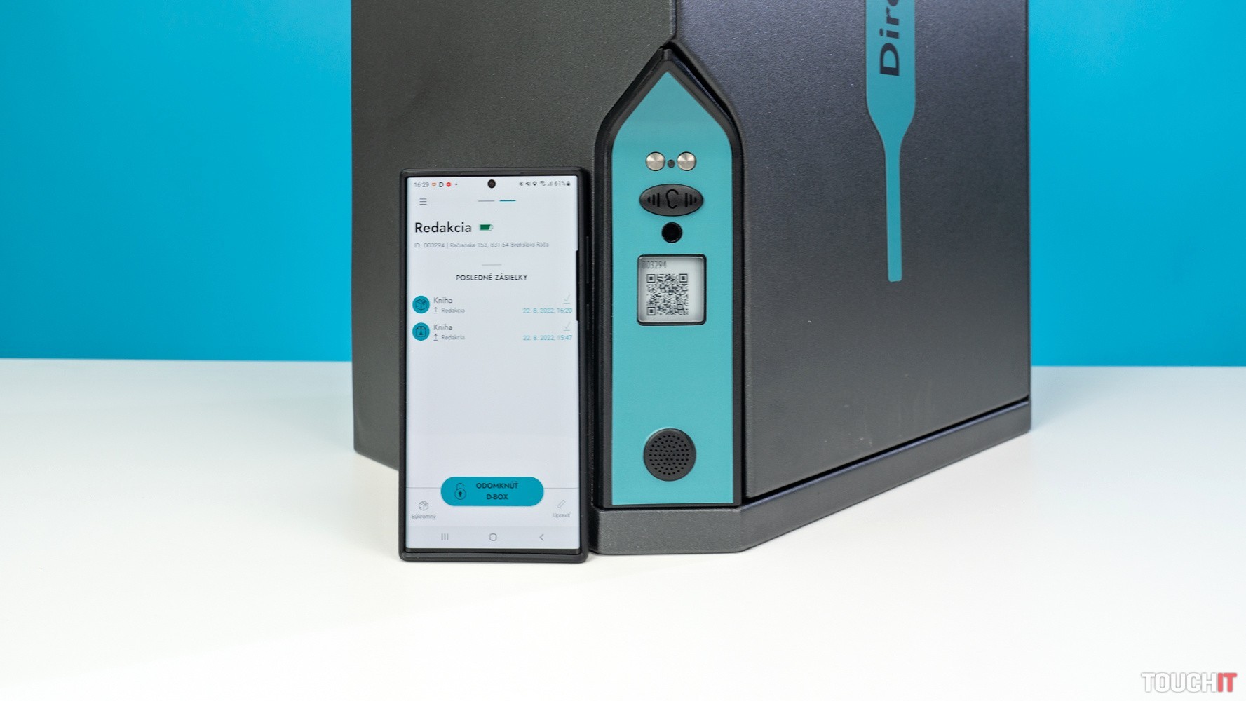 D.Box je totiž možné otvoriť aj bez aplikácie, lebo na otváranie sa dá okrem iného použiť aj technológia využívajúca prenos dát prostredníctvom zvuku – tzv. Data over Voice (DoV). Súčasťou predného panelu D.Boxu je tak mikrofón a reproduktor. Tiež tam nájdete senzor pohybu, vďaka ktorému D.Box „zobudíte (elektronika sa aktivuje len keď sa naozaj používa a následne sa automaticky uspí a tak sa šetrí energia) , čo signalizuje zelená LED dióda.