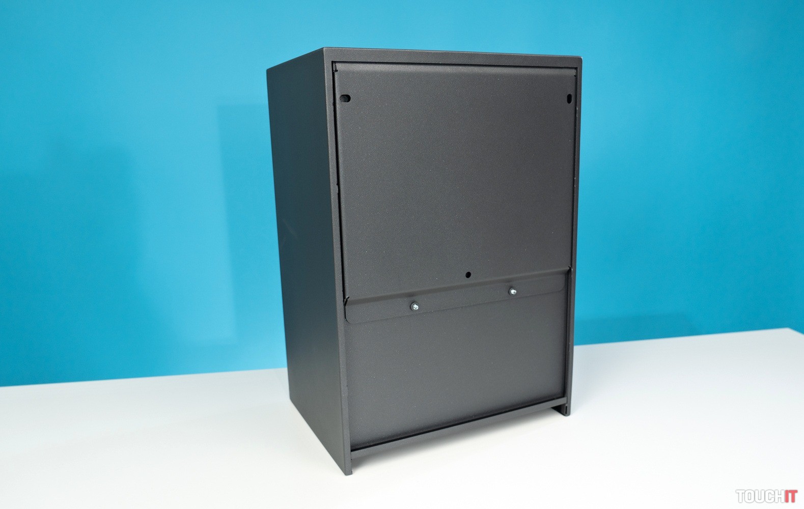 Pri inštalácii je praktické, že samotný D.Box nie je potrebné celý čas držať v rukách. Ten sa totiž uchytáva až na nosný plech, ktorý priložíte na miesto a naznačíte pozície otvorov. Následne, po navŕtaní a pripevnení plechu, naň nasadíte D.Box a pripevníte zvnútra 2 skrutkami. Z vonkajšej strany sa D.Box bez otvorenia dvierok nedá demontovať.