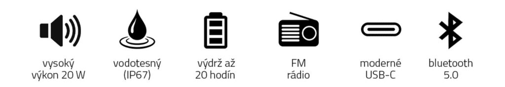 RAZE 4 Origin má výkon 20 W a použiť ho tak môžete aj pri cvičení vonku. Prepojenie s telefónom je cez Bluetooth 5.0, dokáže prehrávať hudbu aj z microSD karty alebo cez AUX kábel s 3,5 mm jackom. Využiť ho môžete ako rádio, pričom anténu má už zabudovanú v sebe.