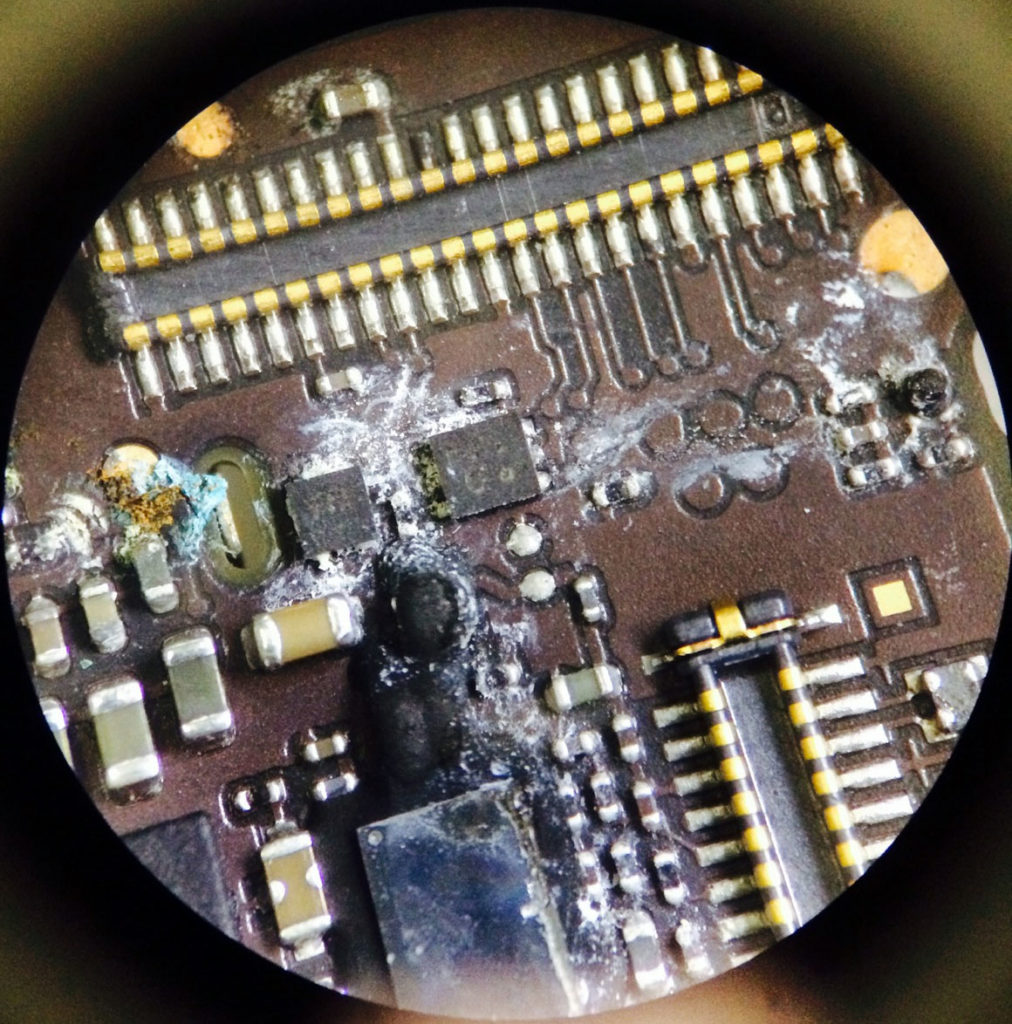 Pravdaže, sušenie rozobratím a nechaním na stole nie je univerzálna metóda. Ak k skratu nedôjde a voda sa kompletne vysuší, na komponentoch zostane povlak nečistôt z vody, prípadne vzniknutá korózia, ktorá zariadenie môže držať nefunkčné. To môžete vidieť na fotkách v článku ako zeleno-biely „maglajz“. Ak k tomu dôjde na nevhodných miestach a zariadenie nefunguje, je nutné ho otvoriť a tieto komponenty vyčistiť.