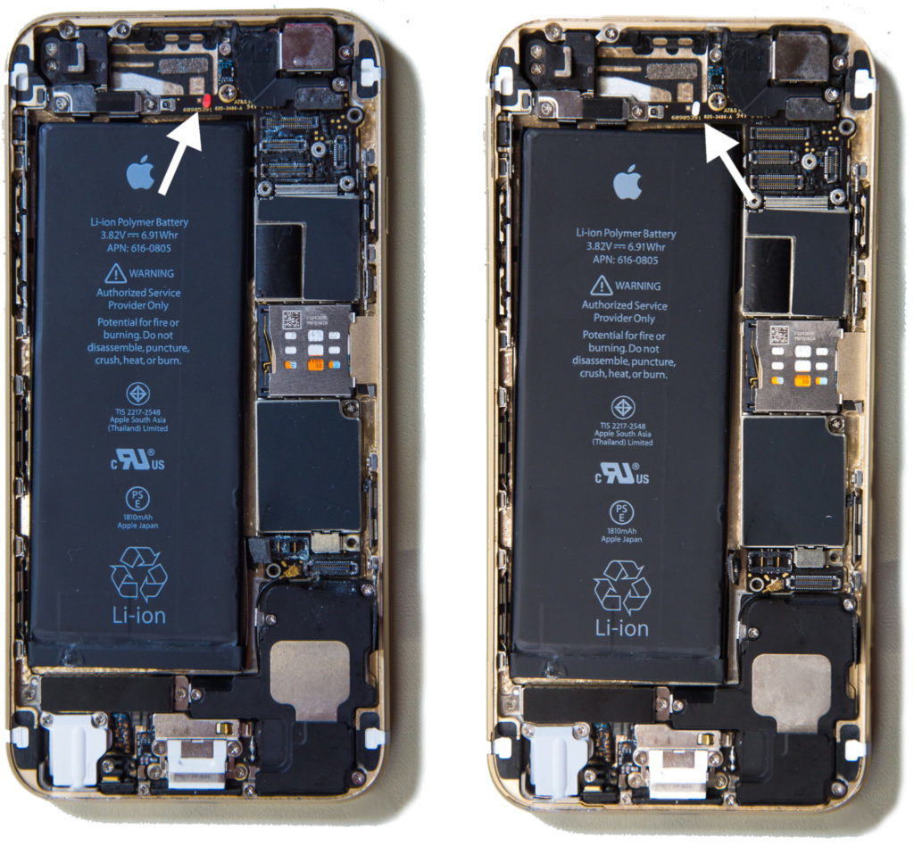 Premýšľali ste niekedy nad tým, ako výrobca spozná, že poškodenie bolo spôsobené vodou a neuzná vám záruku? Telefóny obsahujú na viacerých miestach drobné pásiky, ktoré po kontakte s vodou natrvalo zmenia farbu. V tomto prípade však na telefóne vľavo vidieť aj masívnu koróziu