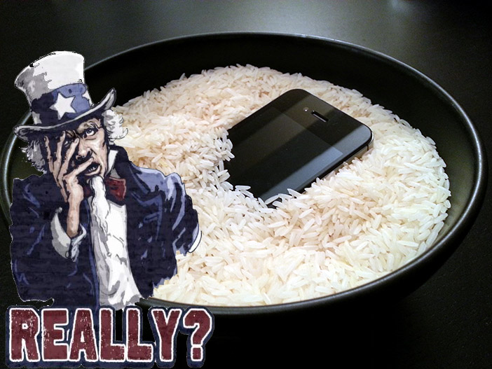 Vložiť mokrý smartfón či inú elektroniku do suchej ryže je samozrejme príšerná hlúposť. Sušeniu tým totiž zabraňujete, pretože zariadenie sa bude menej vetrať. Navyše, ryža obsahuje miniatúrne častice podobné prachu, ktoré vám zariadenia znečisti a keďže je vlhké, pokojne sa dostane tento bodrel aj do rôznych zákutí, kde zostane prilepený. Obzvlášť ak zariadenie budete v ryži doslova prehrabávať pre zvýšenie „sušiaceho efektu“. Keďže ryža saje vlhkosť mizerne, zariadenie neosušíte poriadne ani len z vonku, nieto ešte z vnútra.