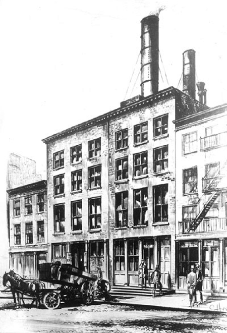 Prvá Edisonova elektráreň, uvedená do prevádzky v roku 1882 na ulici Pearl Street v New Yorku