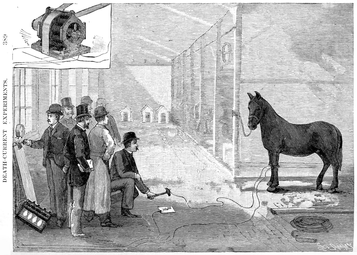 Pred ich šokovanými tvárami elektrinou zabíjal nielen psy, ale postupne sa presúval k čoraz väčším a väčším zvieratám. Zabil niekoľko čoraz urastenejších teliat a napokon sa presunul až ku koňovi, ktorého zabil striedavým prúdom o sile 750 V.