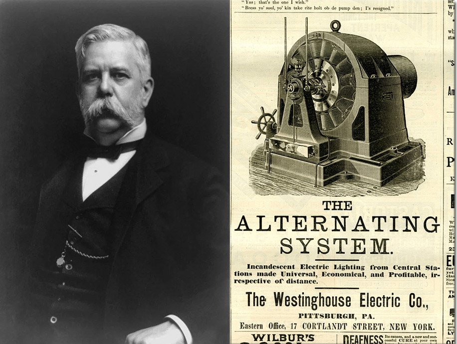 Naproti tomu priekopnícky elektrický inžinier a biznismen George Westinghouse mal víziu v elektrifikácii, založenej na distribúcii striedavého prúdu, v čom ho podporovalo aj mnoho elektrických inžinierov z Európy. Kľúčovým Westinghousovým pomocníkom sa stal srbský vynálezca a inžinier narodený v Rakúsko-Uhorsku, ktorý práve emigroval do Ameriky vo svojich 28 rokoch. Jeho meno bolo – Nikola Tesla.