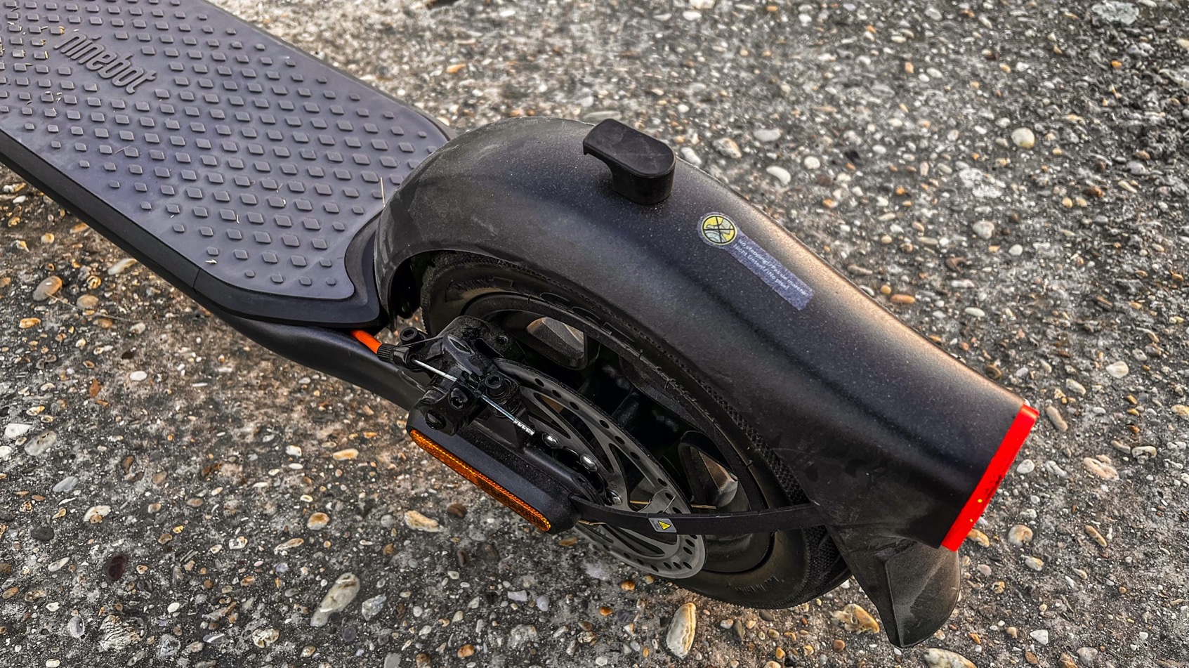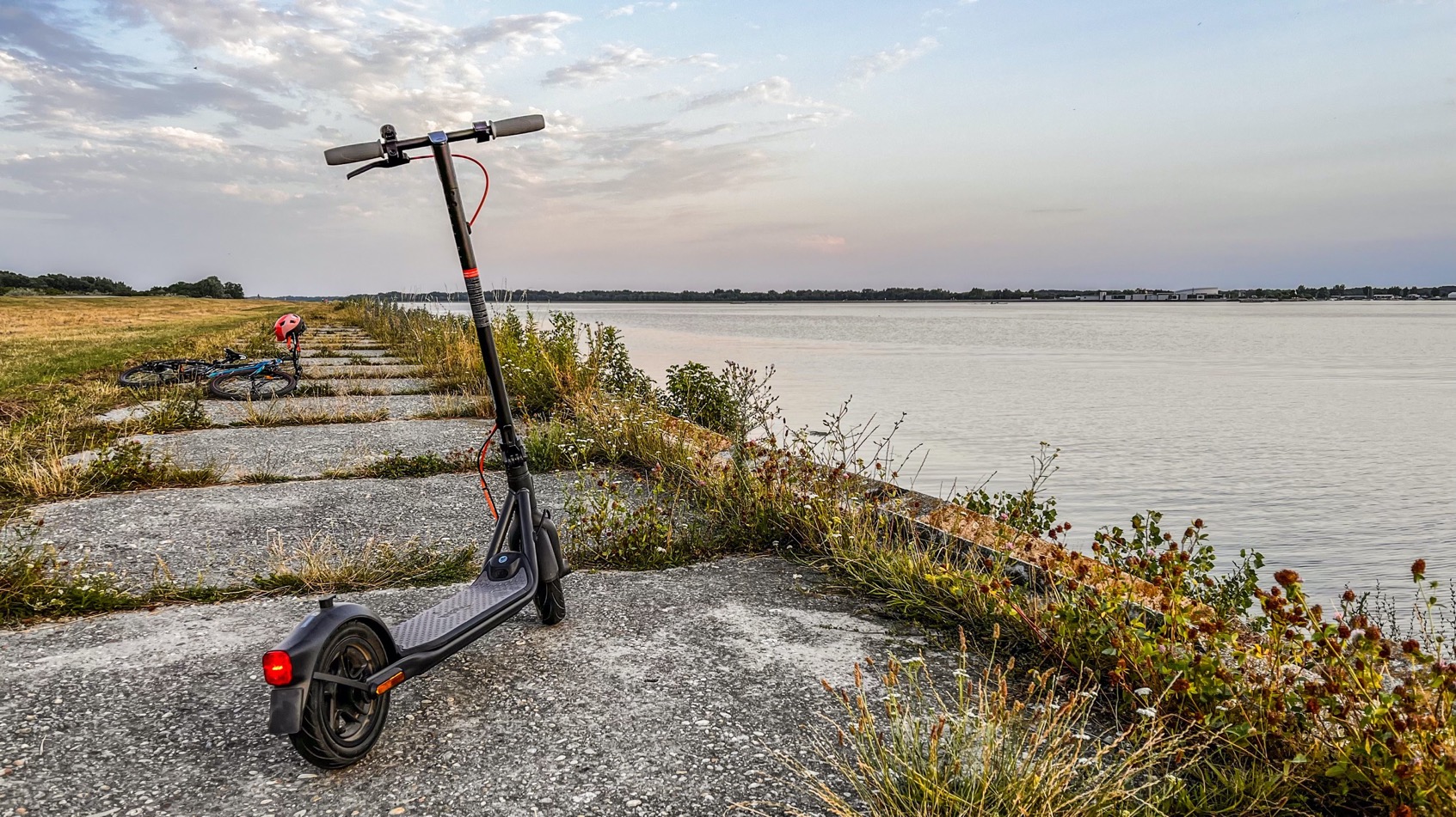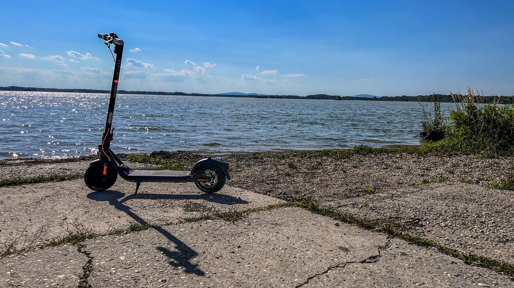 Samozrejmosťou je aj účinná hydraulická brzda na zadnom kolese (140 mm kotúč), ktorú dopĺňa elektronická brzda v prednom kolese. Na túto kombináciu sa dá spoľahnúť takmer vždy, ale viete ako to je, opatrnosti nie je nikdy dosť a nezabúdajte aj na to, že na kolobežke by ste mali nosiť ochrannú prilbu. Cením aj dostatočne veľký nášľap s protišmykovou vrstvou, ktorý sa ujme i veľkých nôh :).