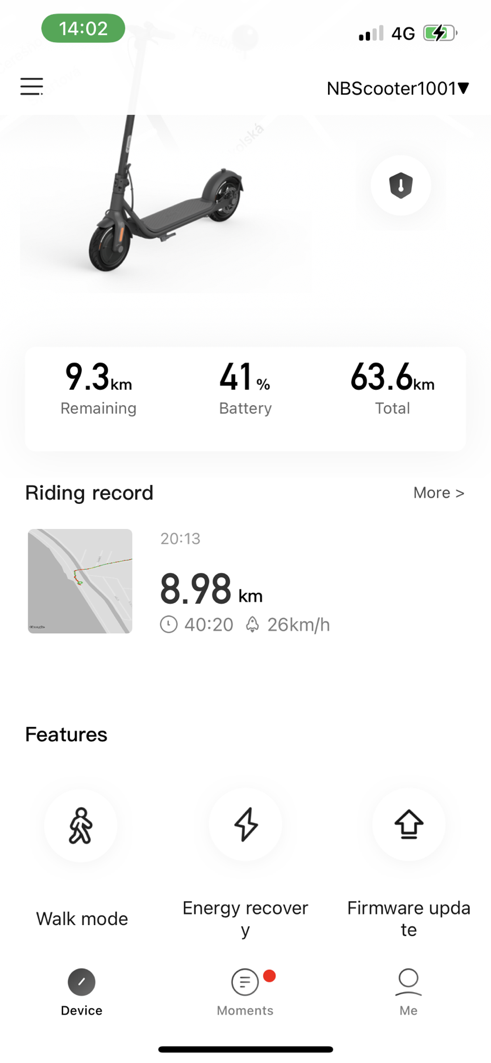 Okrem toho je v ponuke aj možnosť záznamu trás, ktoré si viete následne prezrieť na mape a v prípade potreby zdieľať na sociálne siete. Ak máte telefón v stojane na kolobežke, tak si viete aktivovať prístrojový panel, kde vidíte rýchlosť, výkon motora, účinnosť rekuperácie a aktuálnu teplotu zariadenia. Nechýba ani elektronický zámok, ktorý ak aktivujete a niekto pohne kolobežkou, tak začne pípať a vám príde upozornenie (musíte byť v dosahu Bluetooth pripojenia).