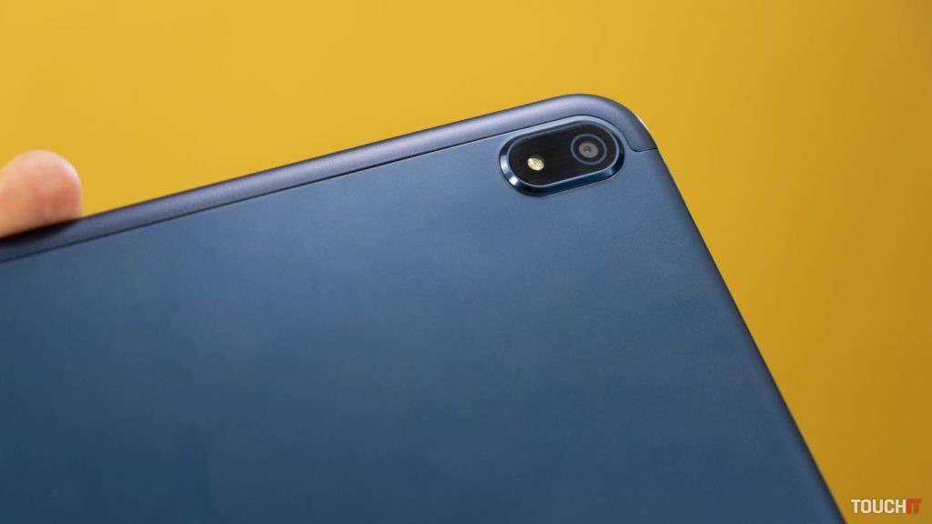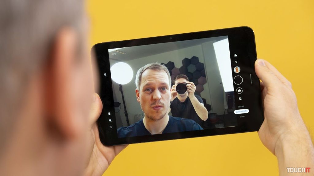 Predný fotoaparát má rozlíšenie 5 Mpx a fixné zaostrenie. V horších svetelných podmienkach si všimnete šum, avšak kvalita videohovorov pomocou tejto kamery bude prakticky na úrovni väčšiny notebookov. Ocenil som, že predný fotoaparát je umiestnený tak, že tablet budete na videohovory používať v režime na šírku.