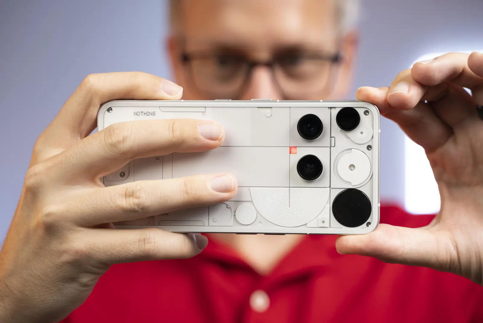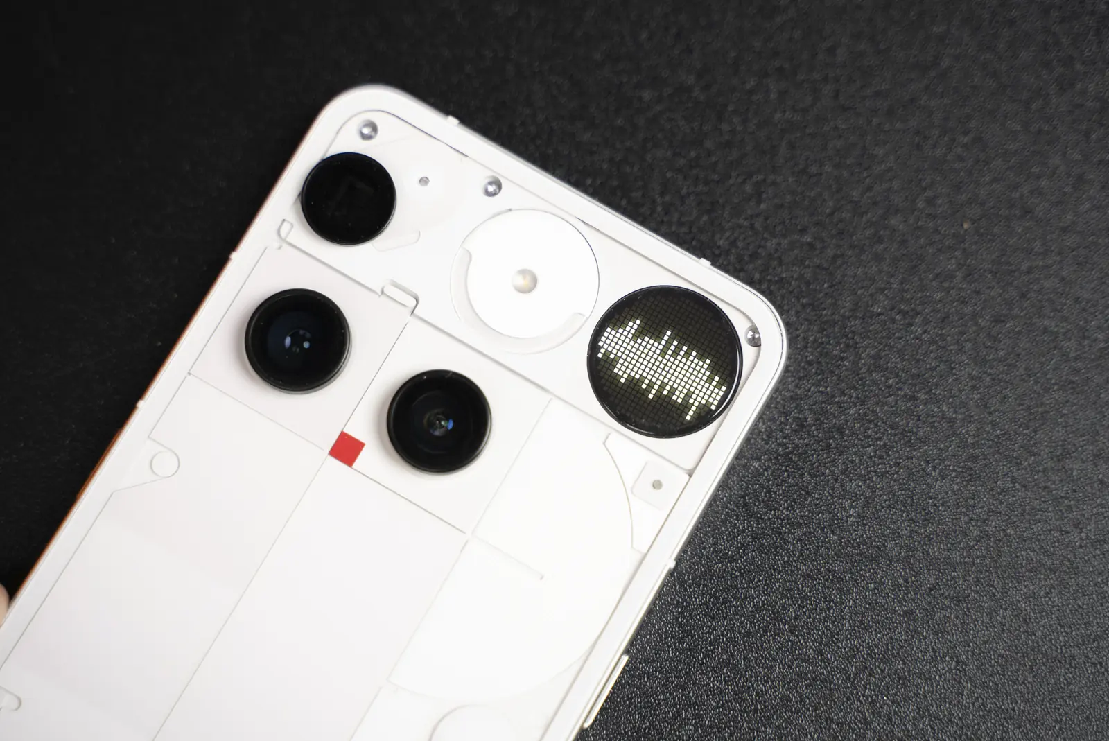 Nothing sa vždy odlišoval od konkurencie dizajnom – zadnej strany aj nadstavby systému Android. Unikátna zadná strana, ktorá vyvoláva pocit, že vidíte do telefónu, opäť nechýba. Svetelné LED diódy, ktoré si mnohí používatelia obľúbili, však áno.