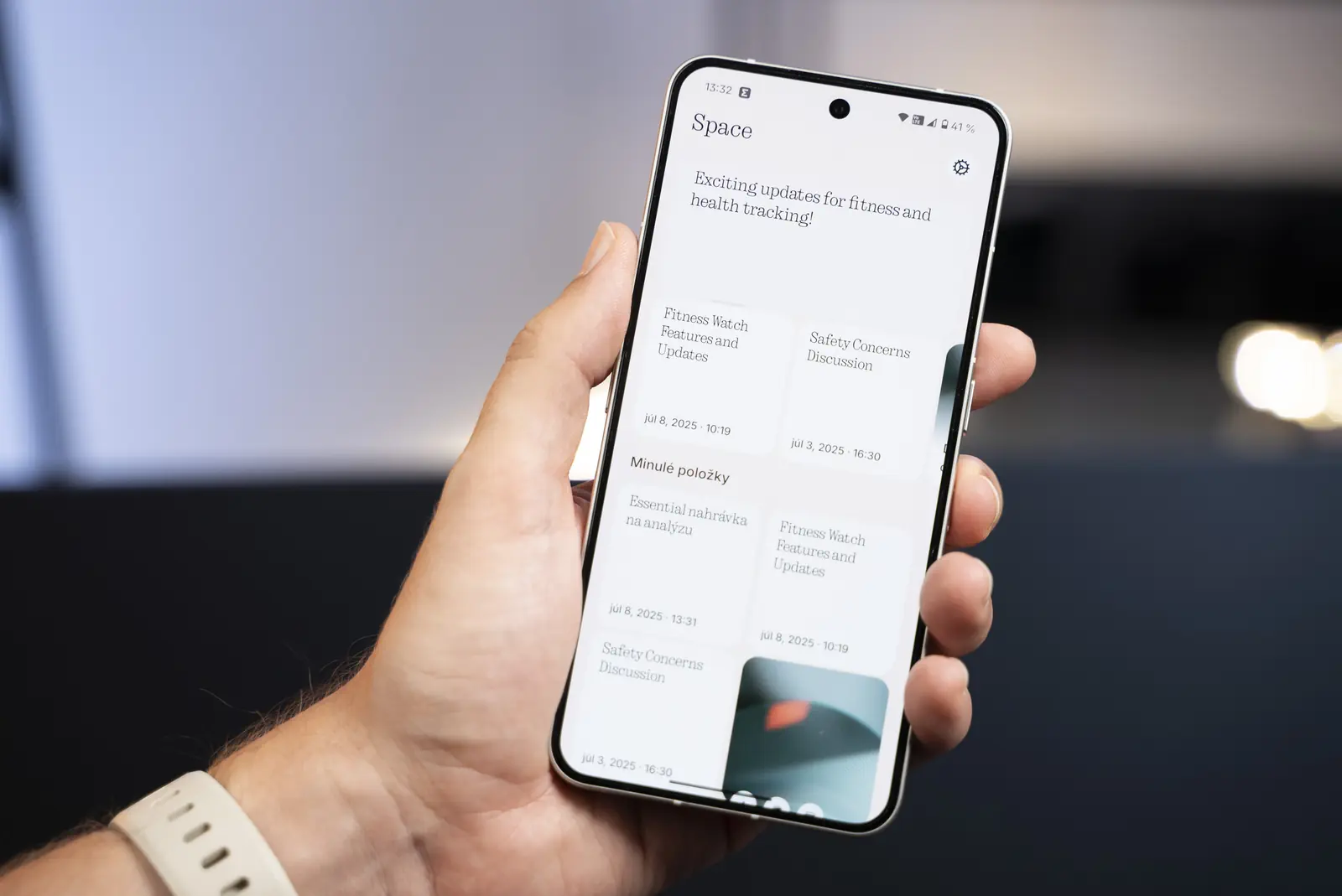 Cez aplikáciu Essential Space si môžete kedykoľvek pozrieť textové poznámky aj prepisy hlasových nahrávok, prípadne si ich opätovne vypočuť. Telefón dokáže analyzovať textové aj hlasové poznámky a v prípade potreby vám automaticky vytvorí to-do list.