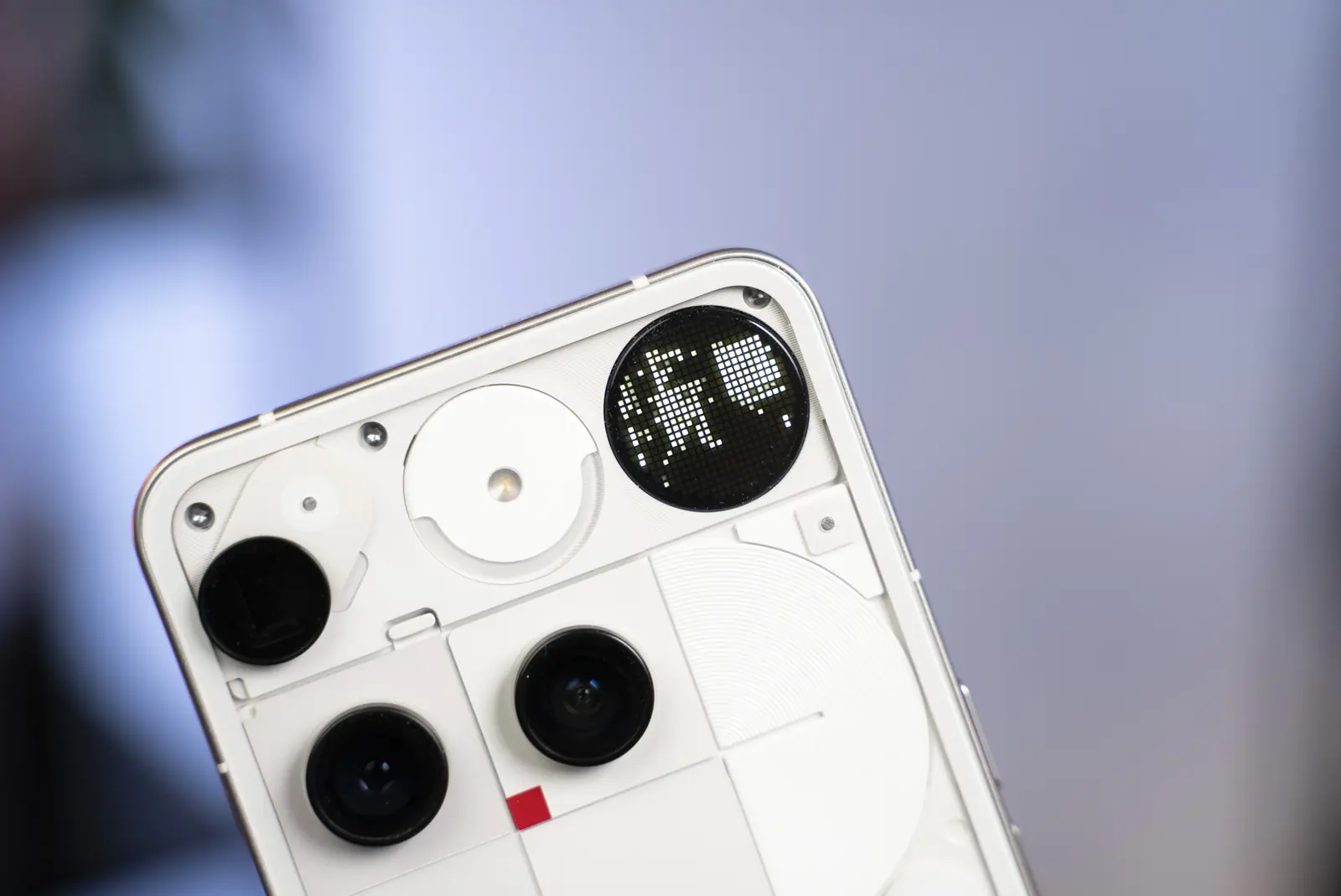 Nothing ich nahradil druhým malým displejom, ktorý sa nachádza v pravom hornom rohu. Displej pozostáva zo 489 micro-LED diód, ktoré vedia vytvoriť rôzne obrazce, grafiky či jednoduchý text, ako sú čísla s informáciou o aktuálnom čase. Druhý displej sa nazýva Glyph Matrix a môžete ho využiť aj vo funkcii baterky – rovnako ako Glyph rozhranie v prípade starších smartfónov značky Nothing.