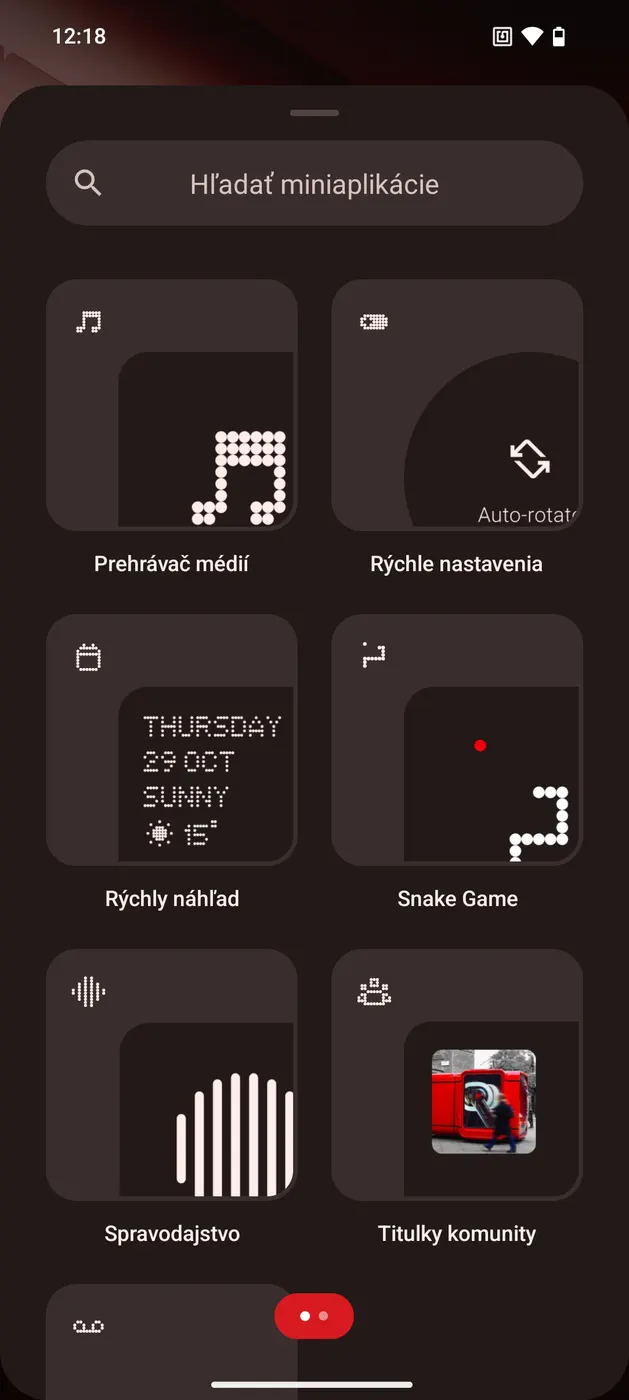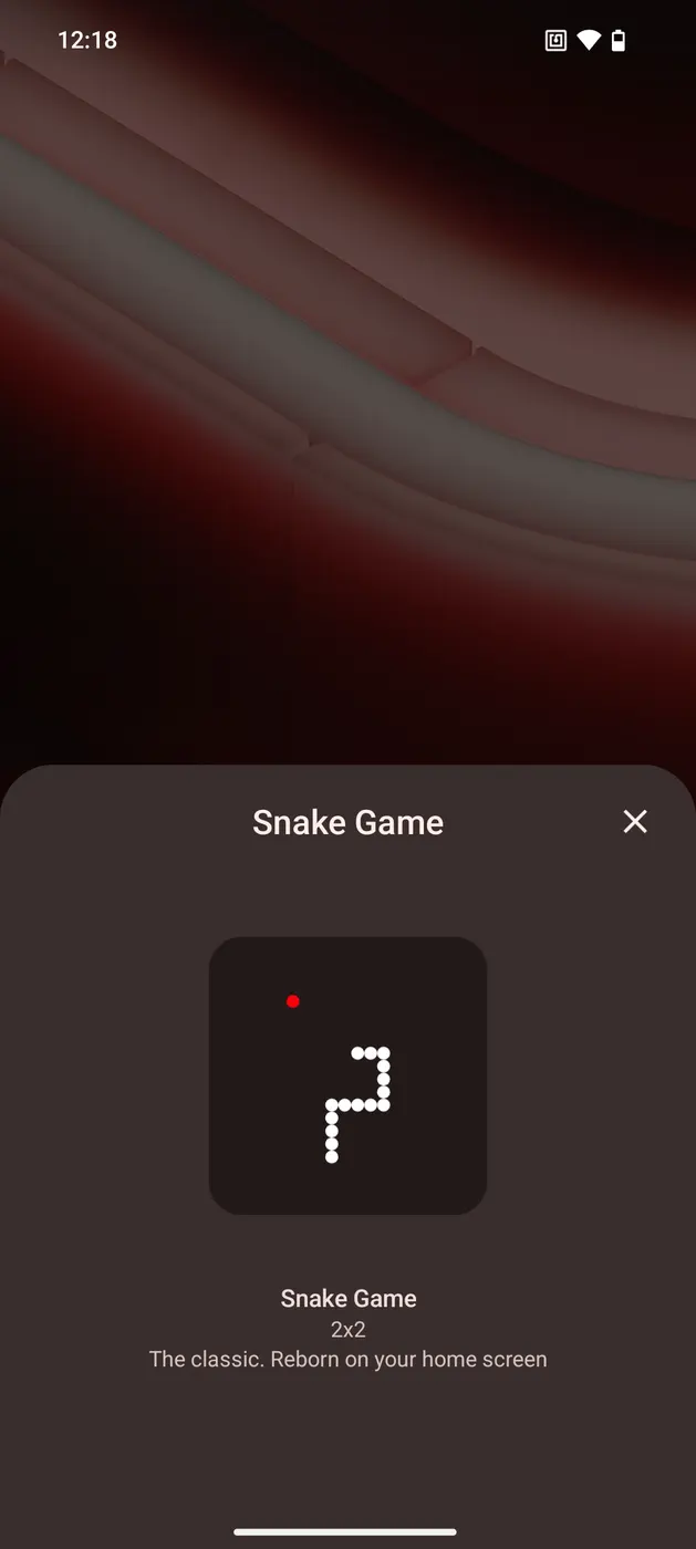 Widget s hrou Snake je už k dispozícii, avšak pre spustenie hry je potrebné nainštalovať aplikáciu Nothing Community Widgets. Princíp hry je rovnaký ako v prípade klasickej hry Snake od Nokie. Používatelia môžu pohybovať hadom po ploche miniaplikácie, aby ho nasmerovali na červený bod, ktorý “zožerie”. Ak budete chcieť hru pozastaviť, stačí po widgete dvakrát poklepať. Hra končí, keď sa had dotkne svojho chvosta.