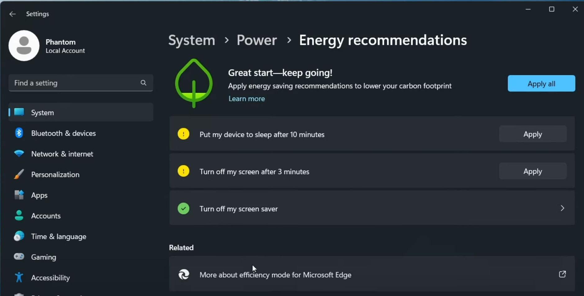 Šetrenie energie je stále téma a v minulosti sme videli niekoľko náhľadov, ako bude systém odporúčať nastavenia spotreby. Informácie v časti Napájanie a batéria sa mierne rozšíria o nové ikony a odporúčania na šetrenie energie. Spomedzi tipov tu nájdete napríklad tip na odporúčaný čas do prechodu na režim spánku alebo na vypnutie obrazovky. Ide však len o odporúčané hodnoty a nemusíte ich aktivovať. Nie každému totiž bude vyhovovať vypnutie obrazovky po 3 minútach neaktivity.