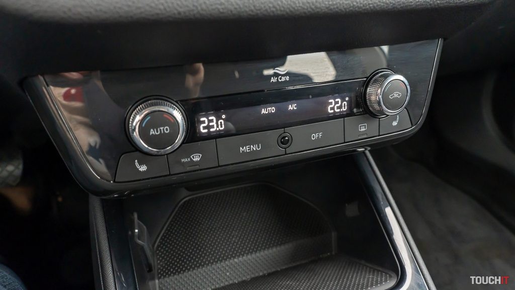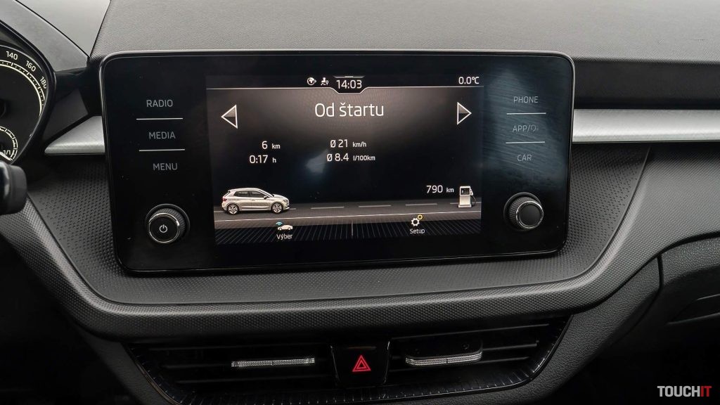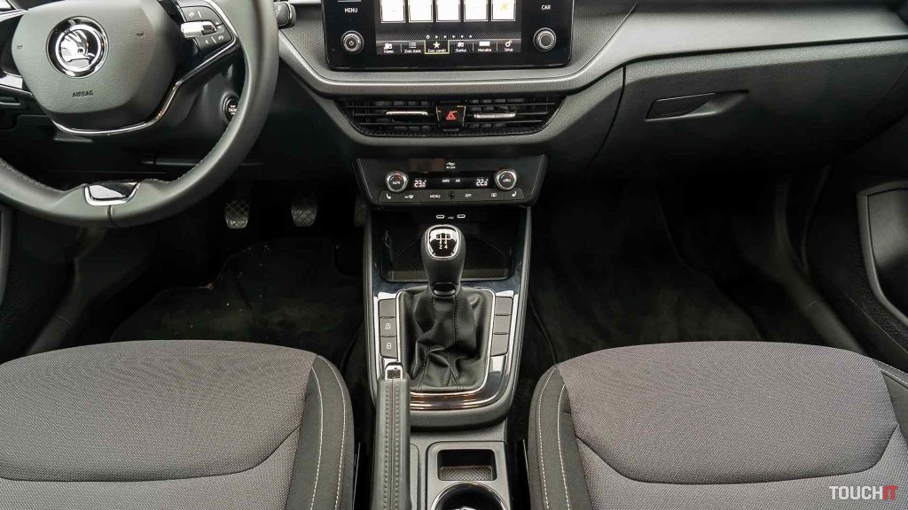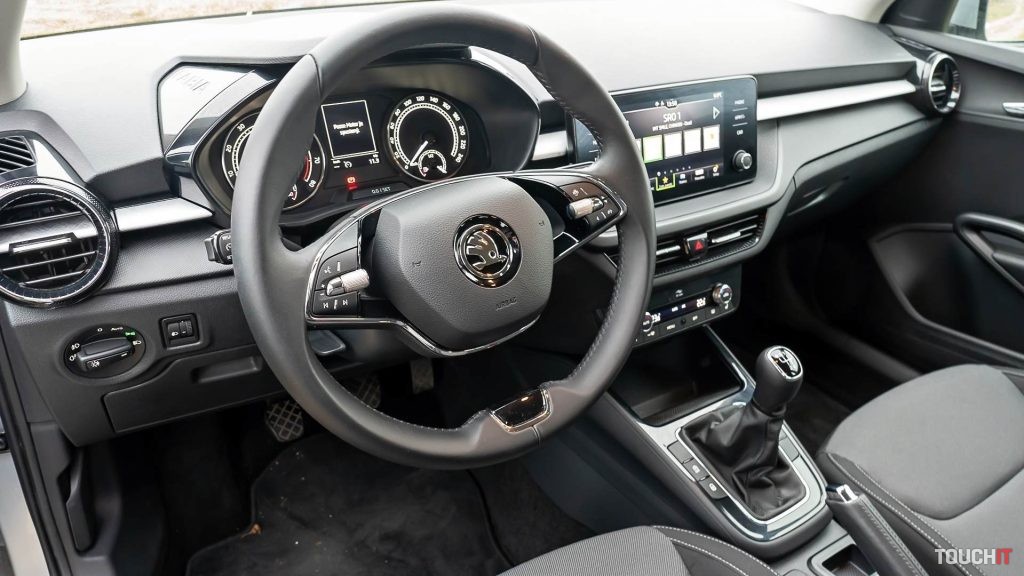 Prevodovka je manuálna, 5-stupňová, parkovacia brzda je ručná. Páči sa nám dotykový displej v strede s mnohými možnosťami a tiež aj možnosti palubného displeja pred vodičom. Je to pohodlnejšie ako displej napr. v elektrických autách Volkswagen ID, ktoré patria do toho istého koncernu. K dispozícii je káblové pripojenie telefónu na USB-C porty a toto spojenie sa dá využiť aj na Android Auto a Apple Carplay. Bezdrôtové pripojenie na tieto systémy sa tu nedá použiť.
