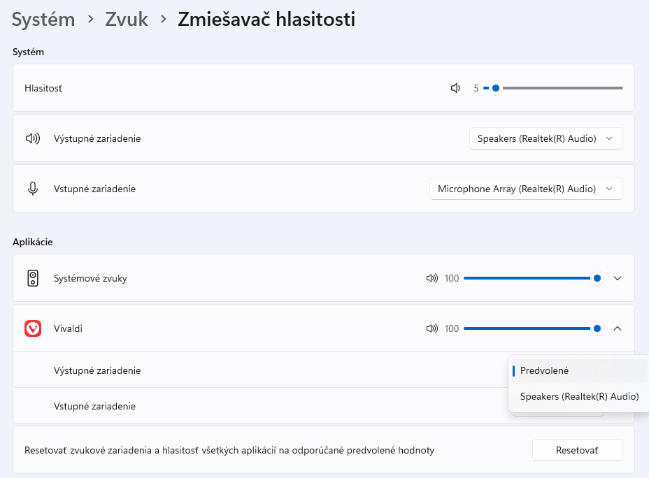 Vylepšenia dostal aj Zmiešavač hlasitosti. Ten je rozdelený na dve časti, a to systémovú a aplikačnú. V systémovej sa mení zvuk pre všetky aplikácie a hromadne a v rámci aplikačnej sú zobrazené tie aplikácie, ktoré využívajú aktuálne zvukový systém. Každej z nich sa dá definovať vstupné a výstupné zariadenie samostatne.