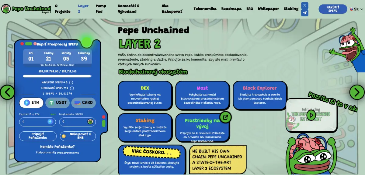 Pepe Unchained: Nový meme coin PEPU ponúka rýchlejšie a lacnejšie transakcie