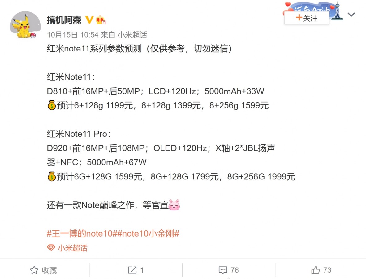 Model Redmi Note 11 Pro by mal do svojej výbavy dostať 120 Hz OLED displej a čipset Dimensity 920, ktorý doplní 6 GB RAM so 128 GB úložiskom. Dostupná bude údajne aj verzia s väčšou 8 GB operačnou pamäťou a 128 GB alebo 256 GB úložiskom.
