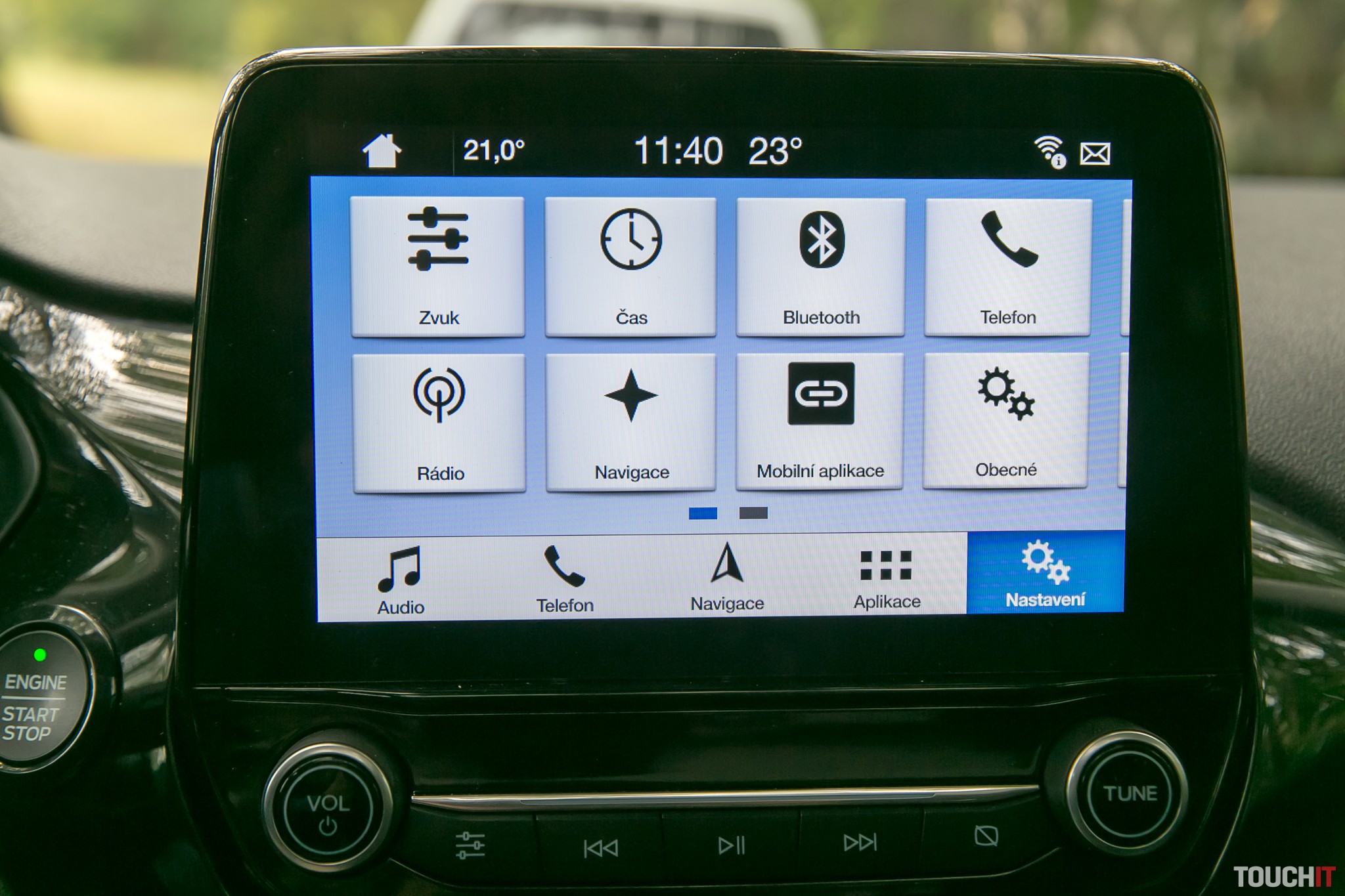 Fiesta je skôr menšie auto, ale v tejto verzii sa doň s prehľadom vojdu 4 dospelé osoby. Ak bude treba a uskromnia sa, bude ich môcť byť aj päť. My sme mali na test verziu Titanium s výraznou chrómovanou maskou chladiča, piatimi dverami a 6-stupňovou automatickou prevodovkou. Cena tohto vozidla je po započítaní bonusu 2000 eur na hodnote 16 730 eur. To je na takto vybavené auto naozaj veľmi príjemná suma. A na prvý pohľad si všimnete aj 16-palcové kolesá z ľahkých zliatin. V našom testovacom vozidle bolo aj panoramatické strešné okno s motorickým otváraním, mali sme operačný systém Ford SYNC 3 a spárovali sme auto so smartfónom. Ku každému vozidlu so SYNC 3 sa dodáva aj aplikácia Sygic Car Navigation a táto potom funguje ako výborný navigačný systém. Tiež sme tu mali výborný audiosystém od spoločnosti Bang & Olufsen s výkonom až 675 W, ktorý je tvorený až 10 reproduktormi. V zadnej časti v dvojitom dne nájdeme aj subwoofer. V takomto aute sme to rozhodne nečakali a hral skutočne výborne. A je k tomu aj jednoduchý parkovací asistent, samozrejmosťou je farebná parkovacia kamera s dobrým rozlíšením a ukazovaním smeru jazdy ako i hlásením prekážok na dráhe. A samotný 6,5 palcový displej je naozaj prehľadný. Rozumie si aj so systémami Apple CarPlay aj Android Auto. Páčila sa nám manévrovateľnosť kufru v zadnej časti. Sklopením sedačiek a zaradením dvojitého dna do správnej polohy dostanete takmer rovné dno a môžete vo Fieste prevážať aj objemné predmety. Prevodovka je tu 6-stupňová automatická, volant aj páka prednej brzdy boli potiahnuté kožou s výrazným prešívaním. Na volante sú všetky potrebné prvky na ovládanie vozidla. Sedačky sú v testovanej verzii textilné, existujú verzie Ford Fiesta s koženými sedačkami. Predná sedačka pre šoféra mala aj nastavovateľnú bedrovú opierku. Keď otvoríte dvere Fiesty, vysunie sa z nich ochranná lišta, ktorá ochráni lak vášho vozidla. Spotreba benzínu bola v našom teste okolo 7,1 litra/100 km, auto je aj s litrovým motorom celkom agilné a počas testu sme ho vôbec nešetrili. Zážihový trojvalec 1.0 EcoBoost (74 Kw) má výkon, aký by ste očakávali od konvenčného motora 1,6 litra. Pritom ale dosahuje nižšiu spotrebu paliva aj emisií CO2, ktorých hodnoty začínajú na 102 g/km. Z asistentov je tu hlásenie nepovoleného prekročenia jazdných pruhov, manuálny tempomat a rozpoznávanie dopravných značiek. LED svietenie je vpredu aj vzadu, Fiesta svieti skutočne dobre. Dômyselnou funkciou Fiesty je tlačidlo Eco. Po jeho stlačení sa niekoľko systémov prepne do úspornejšieho nastavenia. Napríklad akcelerácia bude mäkšia, voľnobežné otáčky motora alebo otáčky ventilátora klimatizácie sú nižšie. Dohromady môžu tieto drobnosti priniesť viditeľnú úsporu paliva. Miesto pre vodiča je príjemné a prístroje na palubnej doske sú logicky rozmiestnené. Priali by sme si nejaké nabíjacie adaptéry na mobilné zariadenia pre cestujúcich na zadných sedadlách, ale tu sme nič také nenašli. Zato je tu elektronický stabilizačný systém, brzdový asistenti, automatická aktivácia svetlometov pri zníženej viditeľnosti, Bluetooth handsfree s bezviečkové doplňovanie paliva. V celkovom hodnotení je to šikovné auto pre menšiu rodinu a oceňujeme plno užitočných technológií na vylepšenie zážitku z cesty ako aj na zvýšenie bezpečnosti jazdy.Podobné články