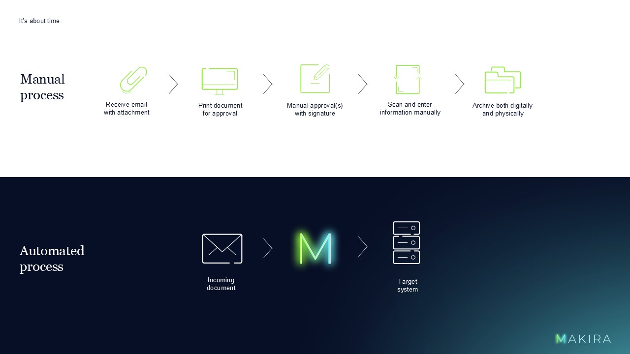 Okrem toho pomáhame firmám efektívne spravovať a optimalizovať ich dáta pomocou nástrojov ako Glasswing. Tento nástroj automatizuje až 99 % procesov pri správe master dát, čím znižuje chybovosť a zlepšuje konzistenciu dát. To je dôležité pre veľké podniky pri škálovaní a správe komplexných dátových systémov. Riešenie Makira zase poskytuje inteligentnú automatizáciu, napríklad pri spracovaní faktúr, čím pomáhame zefektívniť každodenné operácie našich klientov.