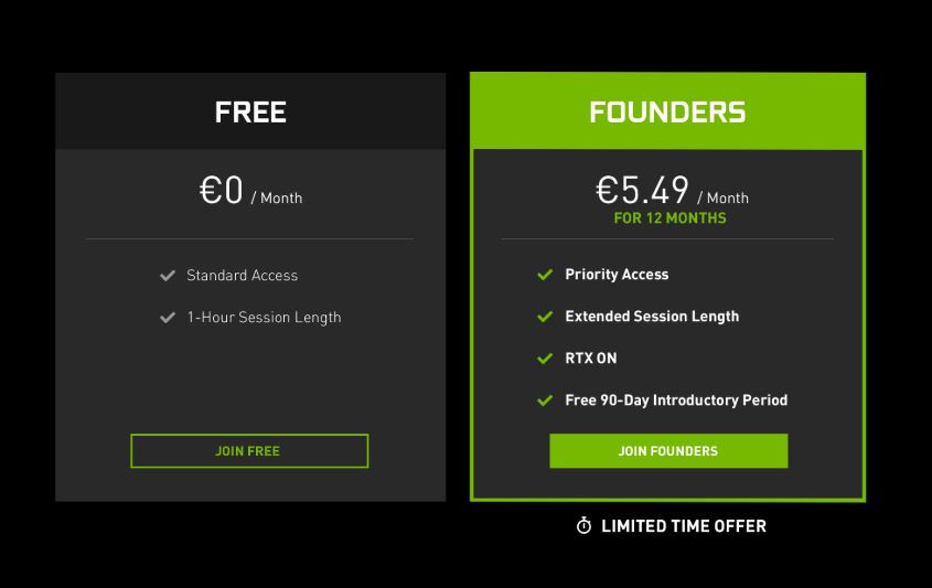GeForce NOW ponúka aj platené členstvo. Počas časovo obmedzenej doby si môžete vytvoriť tzv. Founders konto – 90 dní neplatíte nič, následne bude služba spoplatnená poplatkom 5,49 eur mesačne a to na obdobie 12 mesiacov.