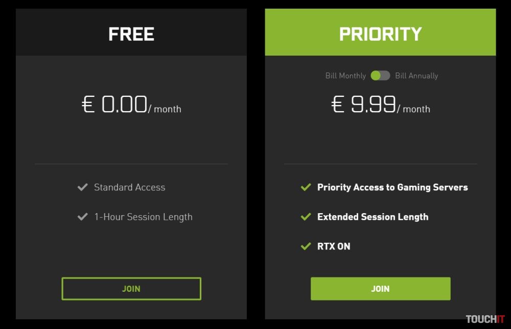 Platená verzia sa po novom nazýva GeForce NOW Priority a je spoplatnená mesačným poplatkom 9,99 eur alebo ročným poplatkom 99,99 eur. Priority verzia ponúka prioritný prístup k službe, takže by sa vám nemalo stať, že budete musieť čakať na počítať v cloude, automatické odpojenie až po 6 hodinách hrania a podporu technológie ray tracing.