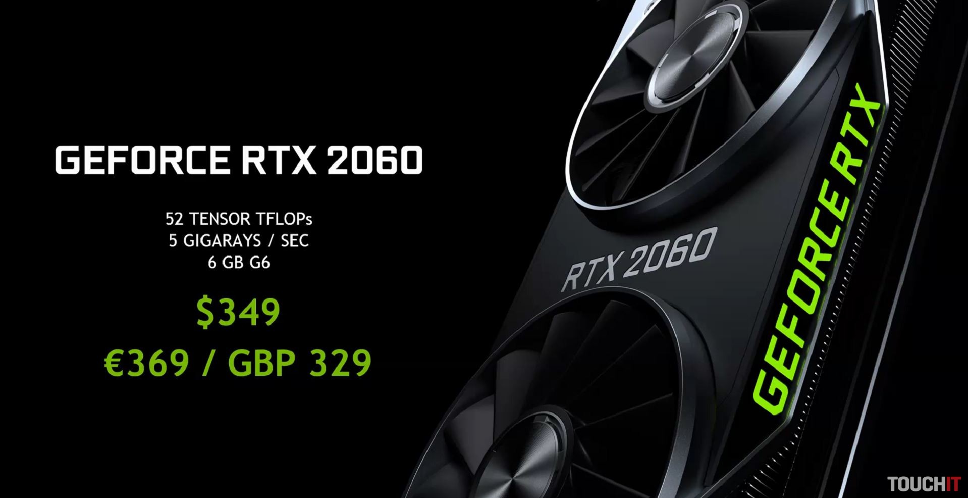 NVIDIA doplnila rodinu grafických kariet GeForce RTX a predstavila model RTX 2060. Ten obsahuje 240 tensor jadier a má výkon 52 teraflopov. Karta je tiež vybavená 6 GB GDDR6 RAM pamäte.