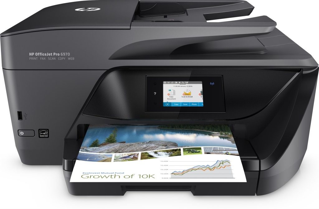 Model DeskJet Pro 6970 je určený na tlač do 800 strán mesačne a na skenovanie do 150 strán mesačne. Je teda vhodný do malej kancelárie, nie na veľkoobjemovú tlač. Kto by však potreboval, je tu možnosť jednorazového extrémneho zaťaženia až na 20 000 str./mesiac. Tam ale začnete narážať na limit životnosti komponentov tohto modelu. Rozlíšenie tlače a skenera je 600 × 1200 dpi a využíva sa systém štyroch náplní. K multifunkcii sa dá pripojiť cez Wi-Fi, USB, alebo LAN káblom a samozrejme aj faxovou linkou. V prednej časti má USB 2.0 port na pripojenie flashdisku. Z neho môžete tlačiť fotografie alebo skenovať na flashdisk do formátov PDF, JPEG a TIFF. Priamo na displeji sa dá nastaviť všetko ohľadom skenovania, kopírovania alebo tlače fotografií. Nepotrebujete priamo ani počítač. Škoda, že nie je možné vytlačiť dokumenty PDF alebo Office priamo z flashdisku.