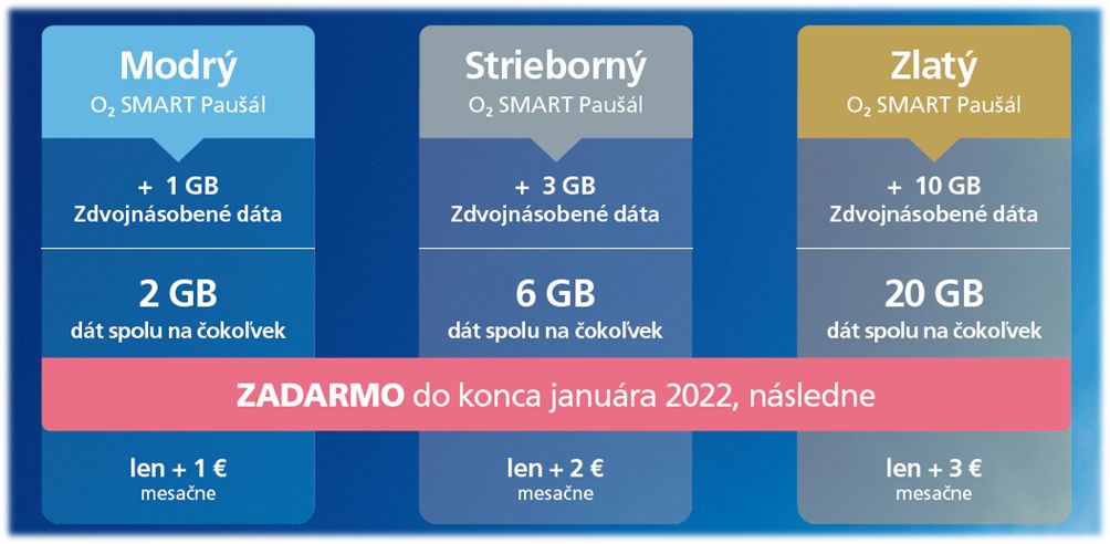 - Modrý O2 SMART Paušál ponúka s extra balíčkom celkovo 2 GB dát