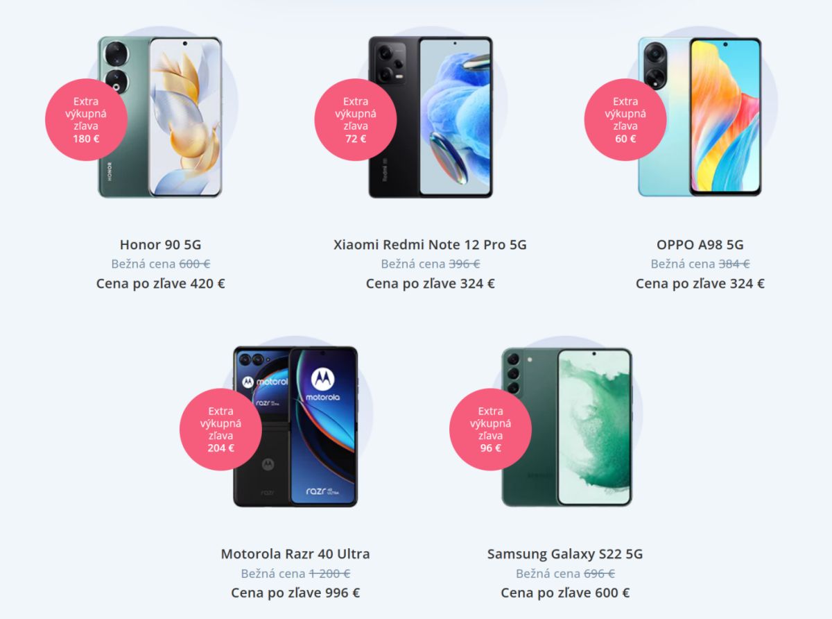 V zľave je päť smartfónov značiek Samsung, Xiaomi, Honor, Motorola a Oppo.