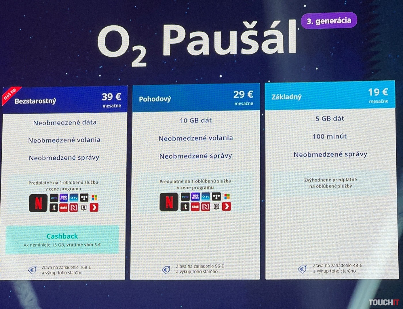 O2 oficiálne predstavilo tretiu generáciu O2 Paušálov, ktorá bude k dispozícii od 31. januára 2023 a nahradí doterajšie portfólio O2 SMART Paušálov a O2 Dát. Nové paušály budú dostupné v troch variantoch v cene 19, 29 a 39 eur: