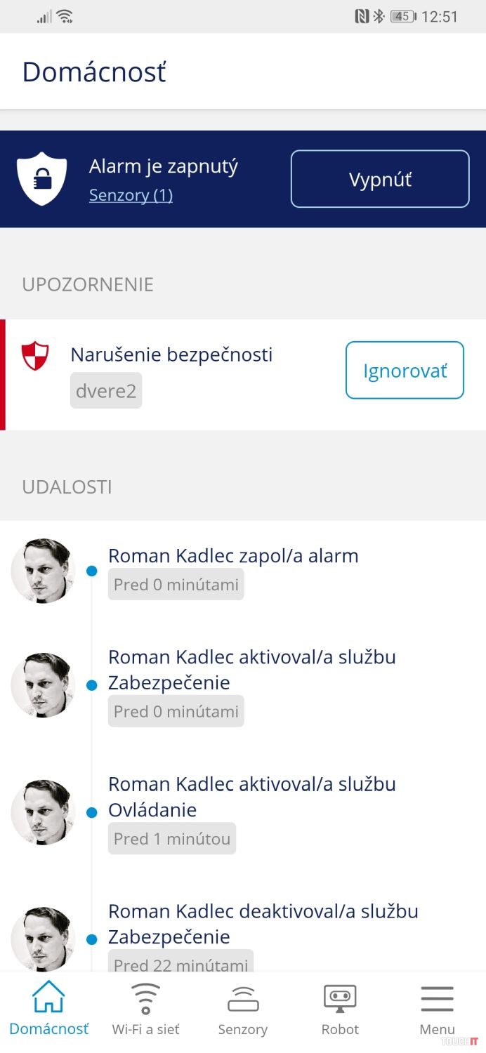Ak nechcete dokupovať ďalšie senzory, môžete využiť aspoň funkciu alarmu a mať prehľad o tom, že nikto neotvoril dvere do vašej domácnosti počas vašej neprítomnosti.
