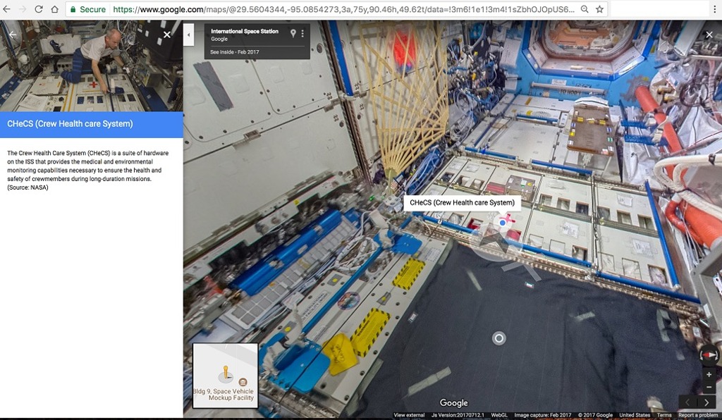 Pri príležitosti historicky prvého pristátia človeka na mesiaci (20. júla 1969) môžu používatelia služby Street View navštíviť Medzinárodnú vesmírnu stanicu (ISS) a objavovať zákutia všetkých 15 modulov v 360-stupňových pohľadoch.