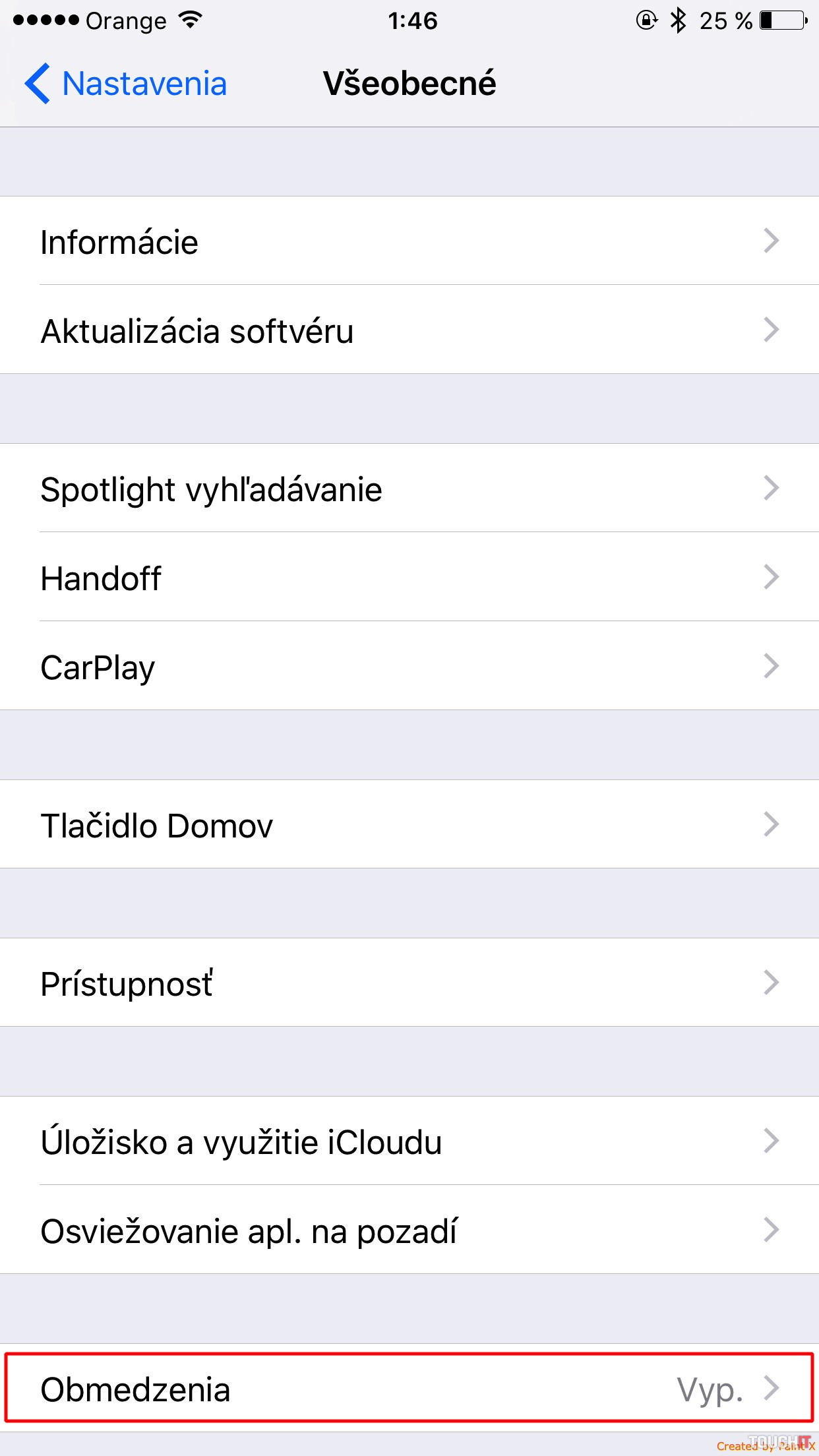 Je potrebné prejsť do nastavení > všeobecné > obmedzenia. To je funkcionalita, ktorú hľadáme. Po kliknutí na túto možnosť sa zobrazí ponuka, v ktorej je ako prvý krok > označiť – povoliť obmedzenia. Následne je potrebné nastaviť štvôr-miestny PIN kód, pod ktorým sa budete do tejto položky prihlasovať a nastavovať telefón podľa potrieb. Je dobré vedieť, že ak heslo zabudnete, jedinou možnosťou je vymazanie celého zariadenia! (Vždy keď režim obmedzenie opätovne zapnete, je vyžadované nové nastavenie hesla, môže byť aj opakovane to isté)