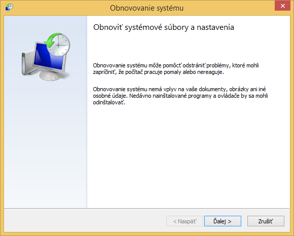 Mnoho problémov spôsobných chybným nastavením alebo zlým zásahom do systému je možné poľahky vyriešiť aj bez navštívenia servisu, alebo slepým skúšaním rôznych postupov opravy. Postačí použiť nástroj Obnovovanie systému, ktorý je akýmsi interným strojom času systému Windows.