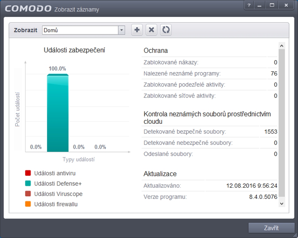 Zobrazenie štatistík od Comodo