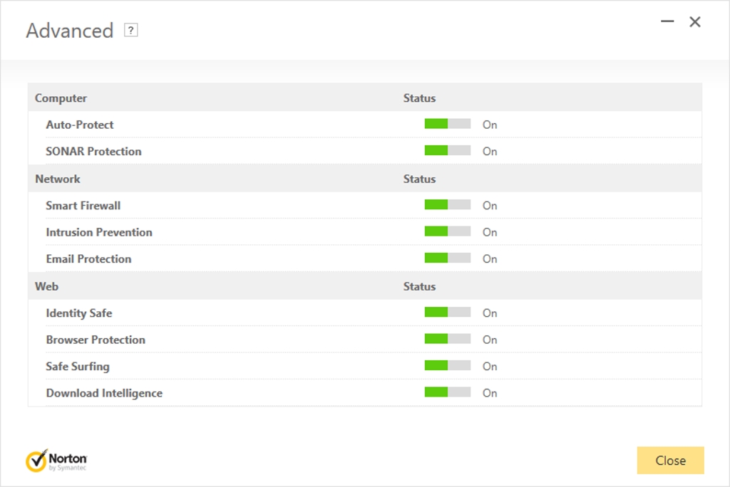 Norton Security je riešenie, ktoré si roky drží povesť nízkych nárokov na systémové prostriedky. Ponúka komplexnú ochranu hesiel a platobných kariet. Okrem firewall a antispamu má špecializované nástroje na ochranu súkromia.