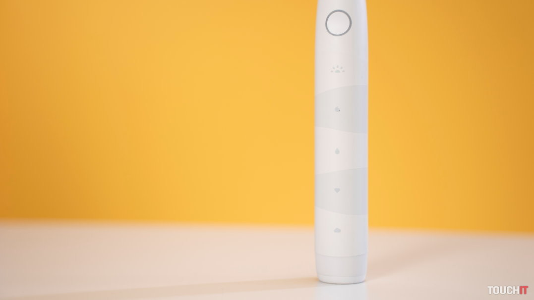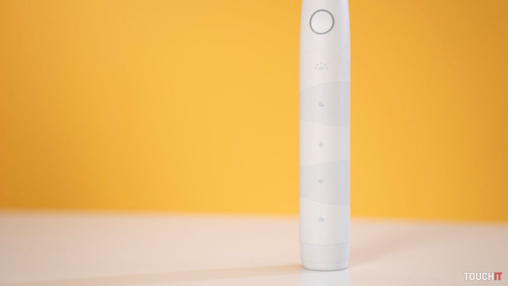 V hornej časti je centrálne tlačidlo, ktoré slúži na zapnutie zubnej kefky a prepínanie sa medzi čistiacimi režimami. Okolo centrálneho tlačidla je LED krúžok, ktorý signalizuje prevádzku zubnej kefky a stav batérie.