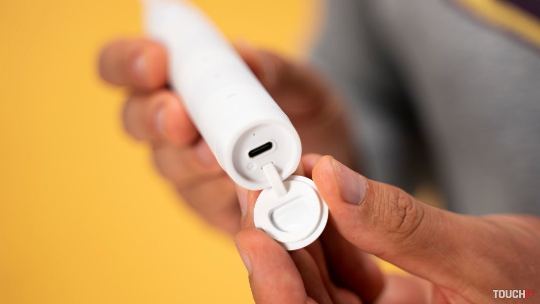 V spodnej časti zubnej kefky je pod záklopkou umiestnený USB-C port na nabíjanie.