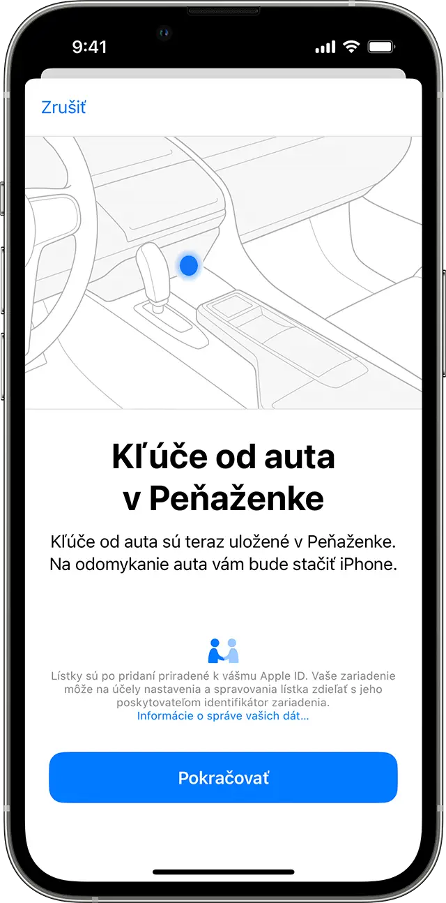 Kľúč od auta si môžete uložiť do Apple Peňaženky.