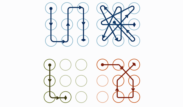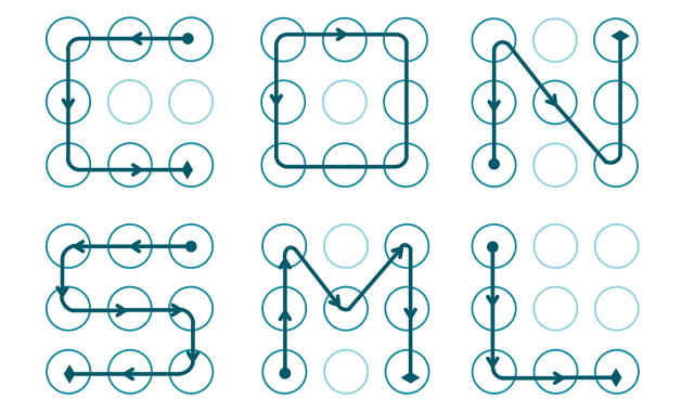Podľa výskumu Nórskej univerzity je aj v tomto prípade situácia podobná. Analyzovali tu 4000 vorov, ktoré majú používatelia na svojom smartfóne a zistili, že sa dajú predpovedať. Až 77 % všetkých vzorov začína na hrane, 44 % začína na hrane vľavo hore. Na konferencii PasswordsCon v Las Vegas prezentovali ďalšie zistenia, podľa ktorých sa zablokovanie vzorom alebo čísleným kódom sa skoro rovnako rýchlo uhádnuť.
