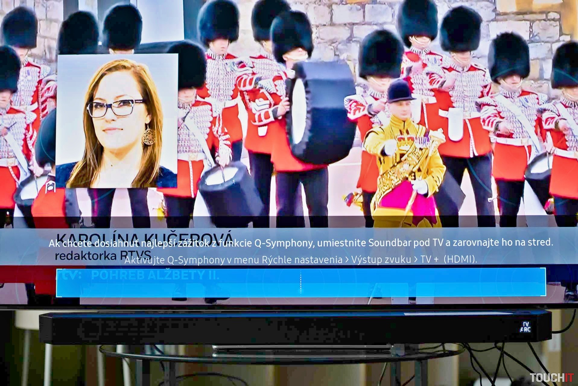 Reproduktory sú ukryté v elektronickej časti televízora a sú tu aj reproduktory, ktoré vyžarujú zvuk do stropu. Celkový zvukový výkon je 60 W. Znie to celkom dobre, priestorovo, podpora Dolby Atmos je fajn. My sme však mali k televízoru aj soundbar HW-Q600B so subwooferom s podporou Q-Symphony a vo formáte 3.1.2. Vtedy hrajú jednak reproduktory zo soundbaru a v súzvuku s tým aj reproduktory z televízora. A to je potom veľmi dobrý a priestorový zvuk.