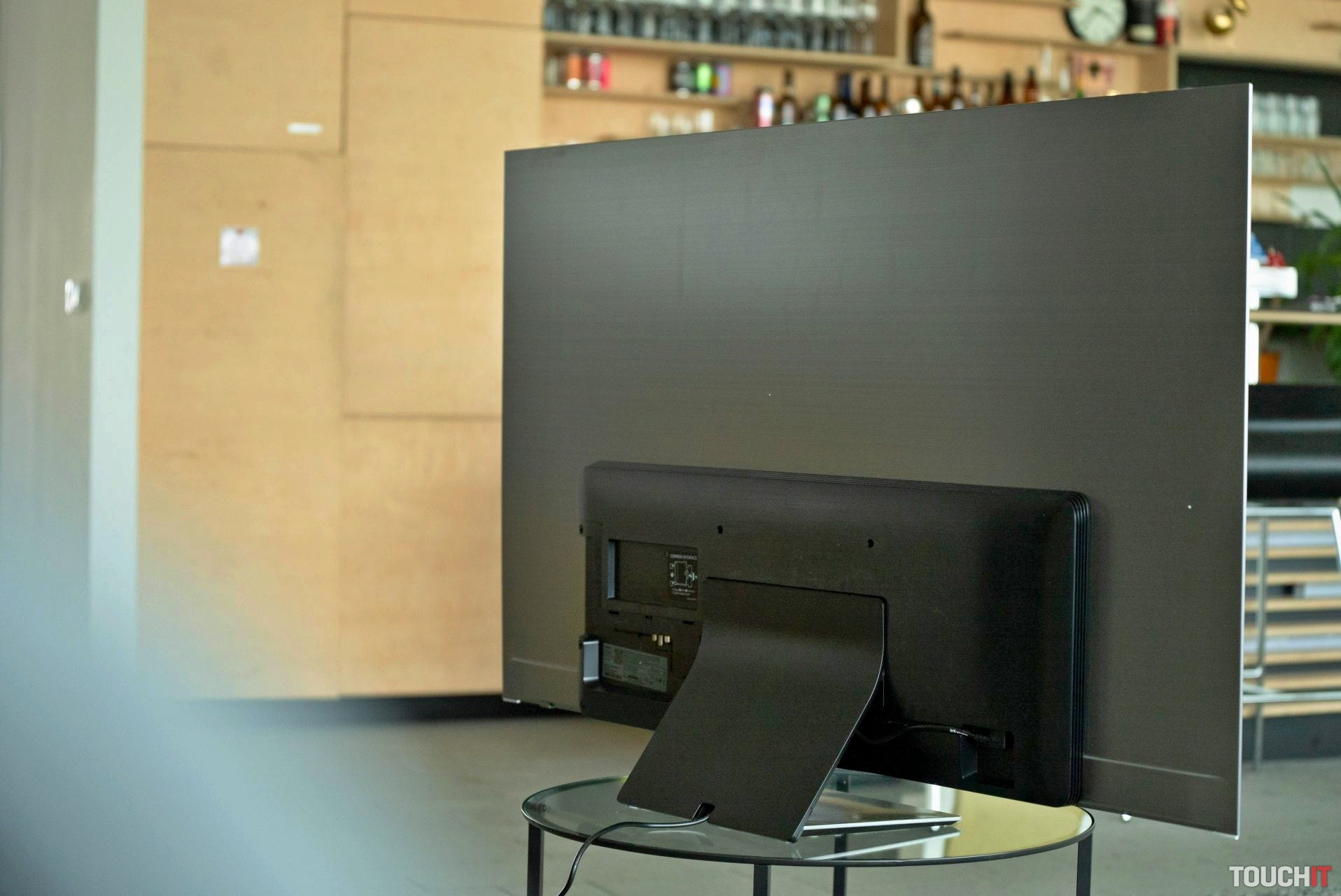 Televízor prichádza v tenkom vyhotovení (LaserSlim) s rýchlo namontovateľným podstavcom a nie je to kombinácia s One Connect boxom, čo inak používa Samsung pri prémiových TV. Vtedy máte osobitne displej a osobitne elektronickú výbavu televízora vrátane konektorov na pripájanie káblov.