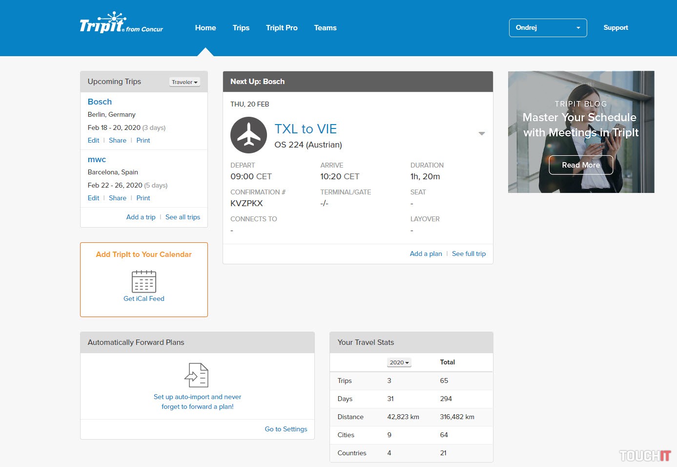 S aplikáciou Tripit žijem už tretí rok a nedám na ňu dopustiť. Najprv som k nej dostal novinársky kód na rok používania platenej verzie a teraz s ňou už druhý rok lietam po svete, úplne bez platenia. Vďaka nej mám ja a moji kolegovia či rodina prehľad o tom, kam idem a hlavne, kedy sa vrátim.