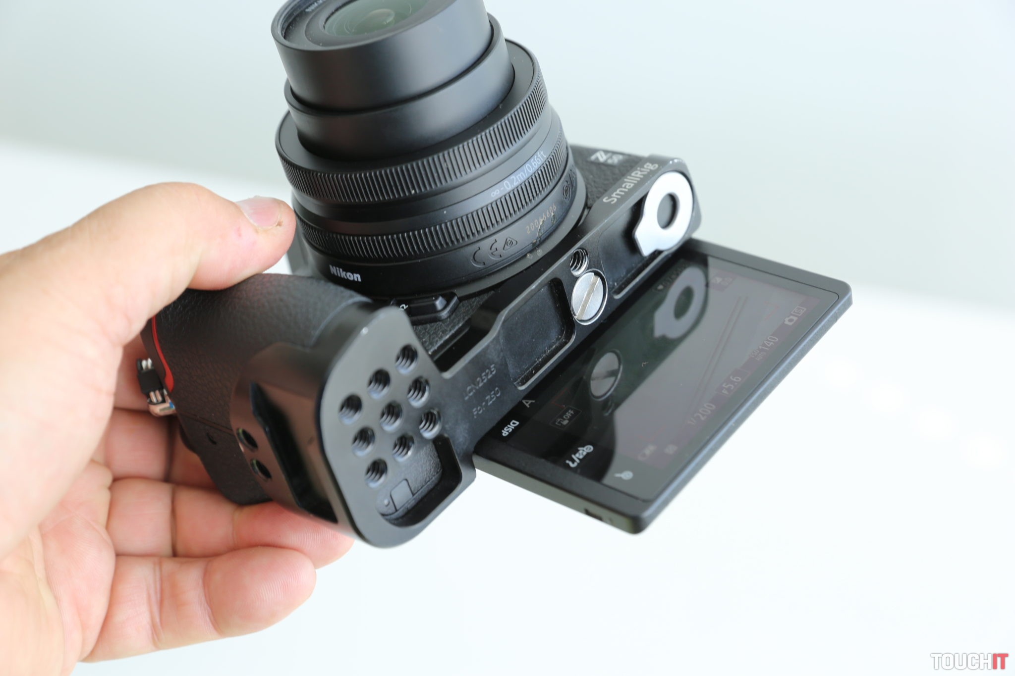 Tretia nevýhoda je tá, že Nikon to vybavil tak, že ak si nasadíte na fotoaparát statív a namierite displej tak, aby sme mohli natáčať vlogy, nič na displeji neuvidíte. Riešenie je totiž také, že statív presne zakrýva stred displeja a veľa tohto na ňom neuvidíte. Riešením je montážna doštička od firmy SmallRig, ktorá slúži na upevnenie príslušenstva a tiež umožní, že vyklopenie displeja smerom dole nebude kolidovať so statívom. Nikon Z 50 takto môžem pripevniť na mini statív ManFrotto Pixi a zároveň sklopiť monitor fotoaparátu do polohy ideálnej na vlogovanie. Na doštičke sú k dispozícii aj dodatočné sánky pre mikrofón alebo svetlo. Stálo ma to asi 50 eur + doprava z ČR, ale ak máte tento foťák, táto doštička je pre vás nevyhnutnosťou.