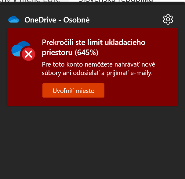 OneDrive má chybu: Hlási nepovolené prečerpanie dátovej kapacity