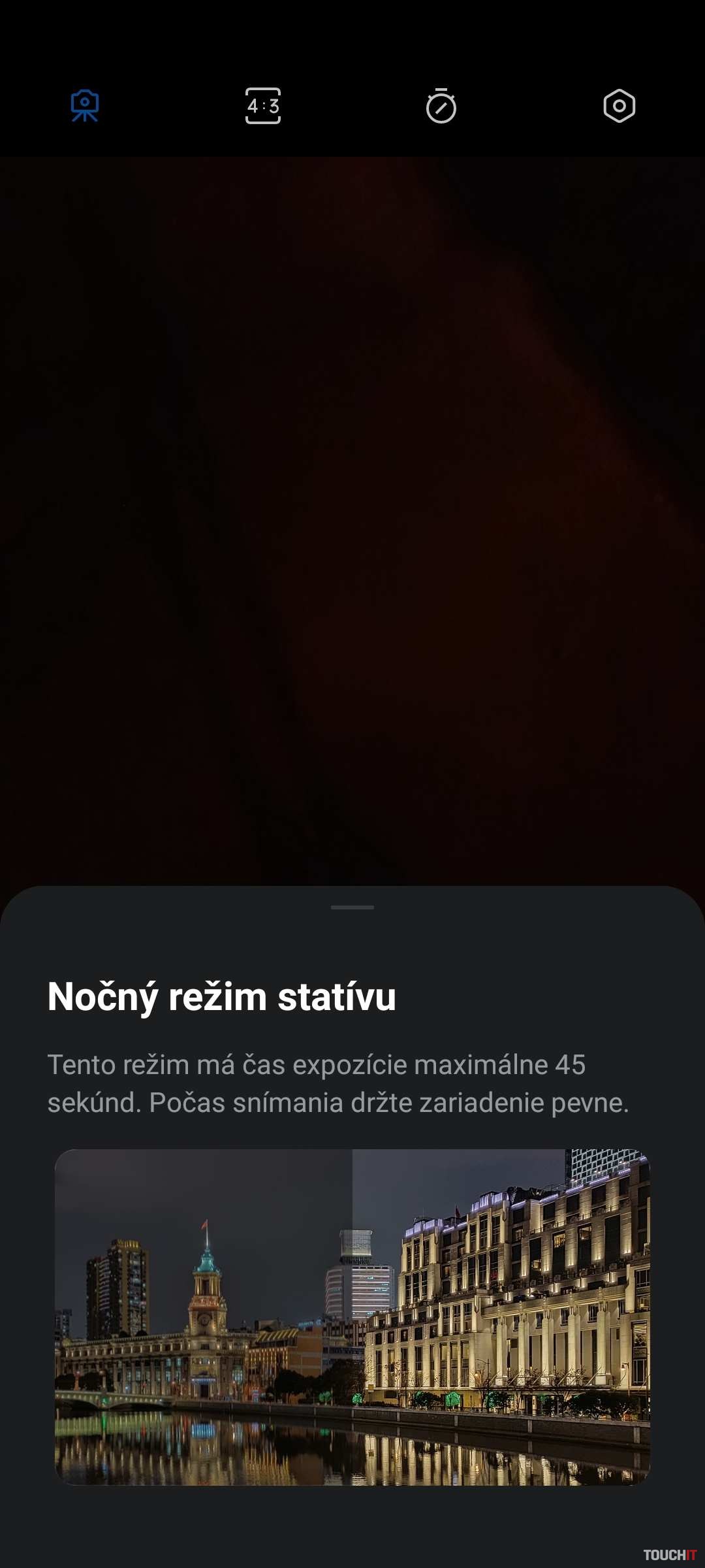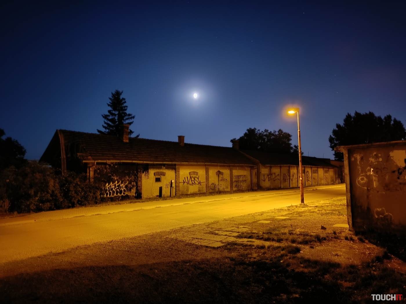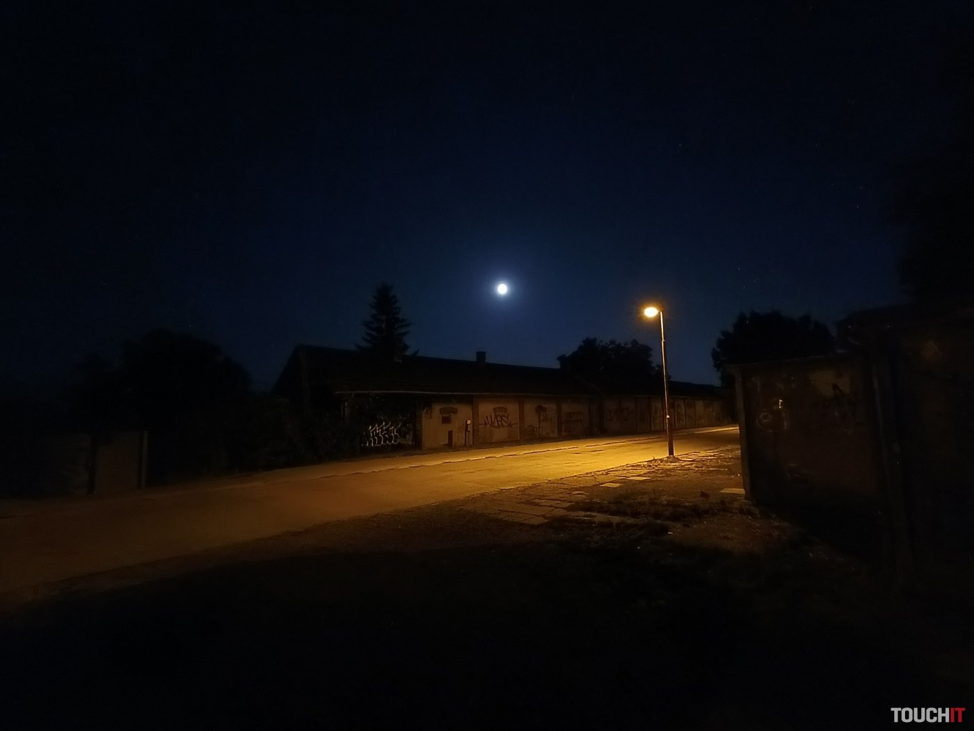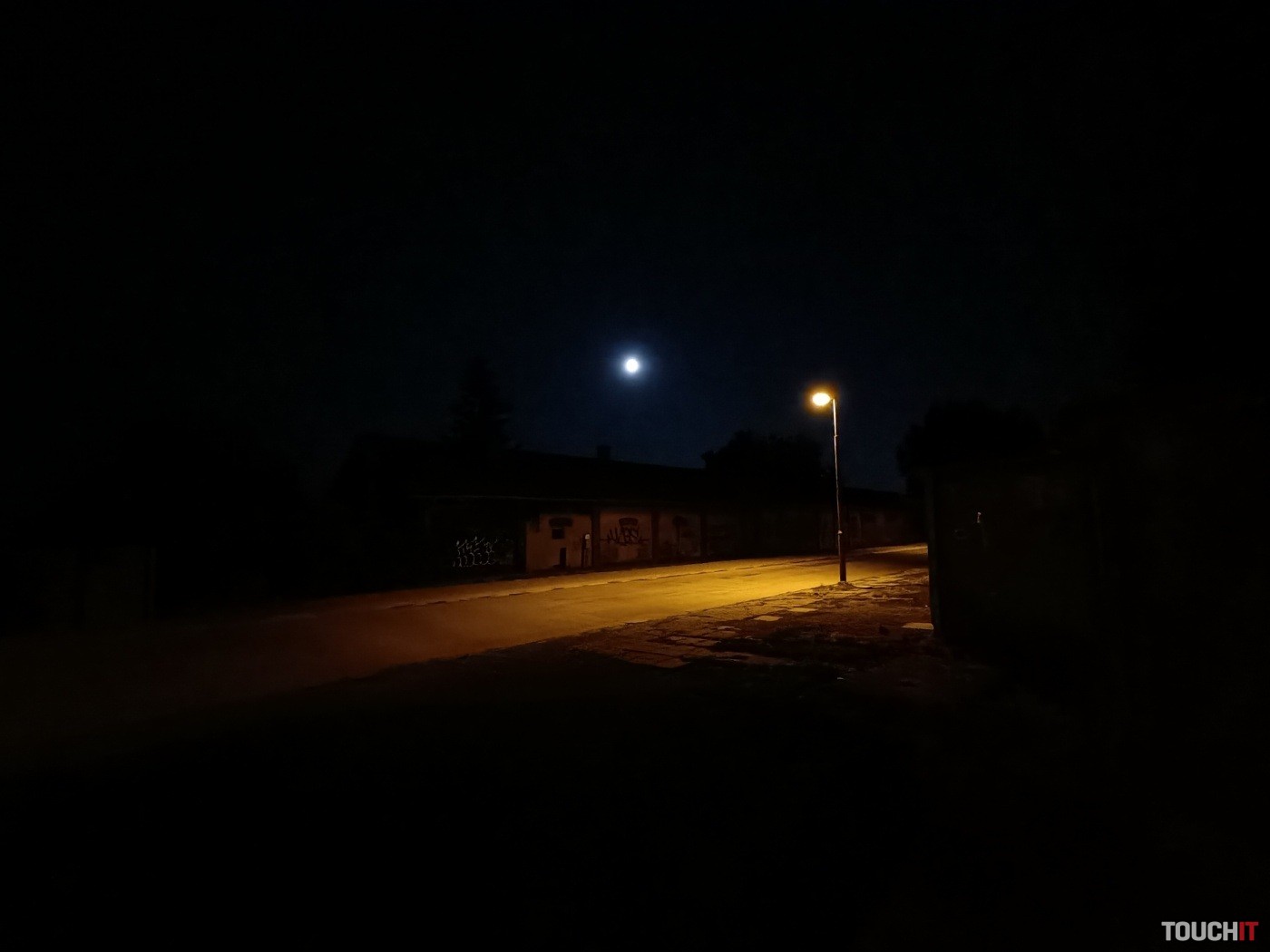 V nočnom režime sú výsledky ultraširokouhlého fotoaparátu priemerné. Scéna je vo výsledku tmavá.