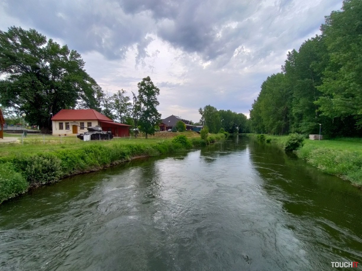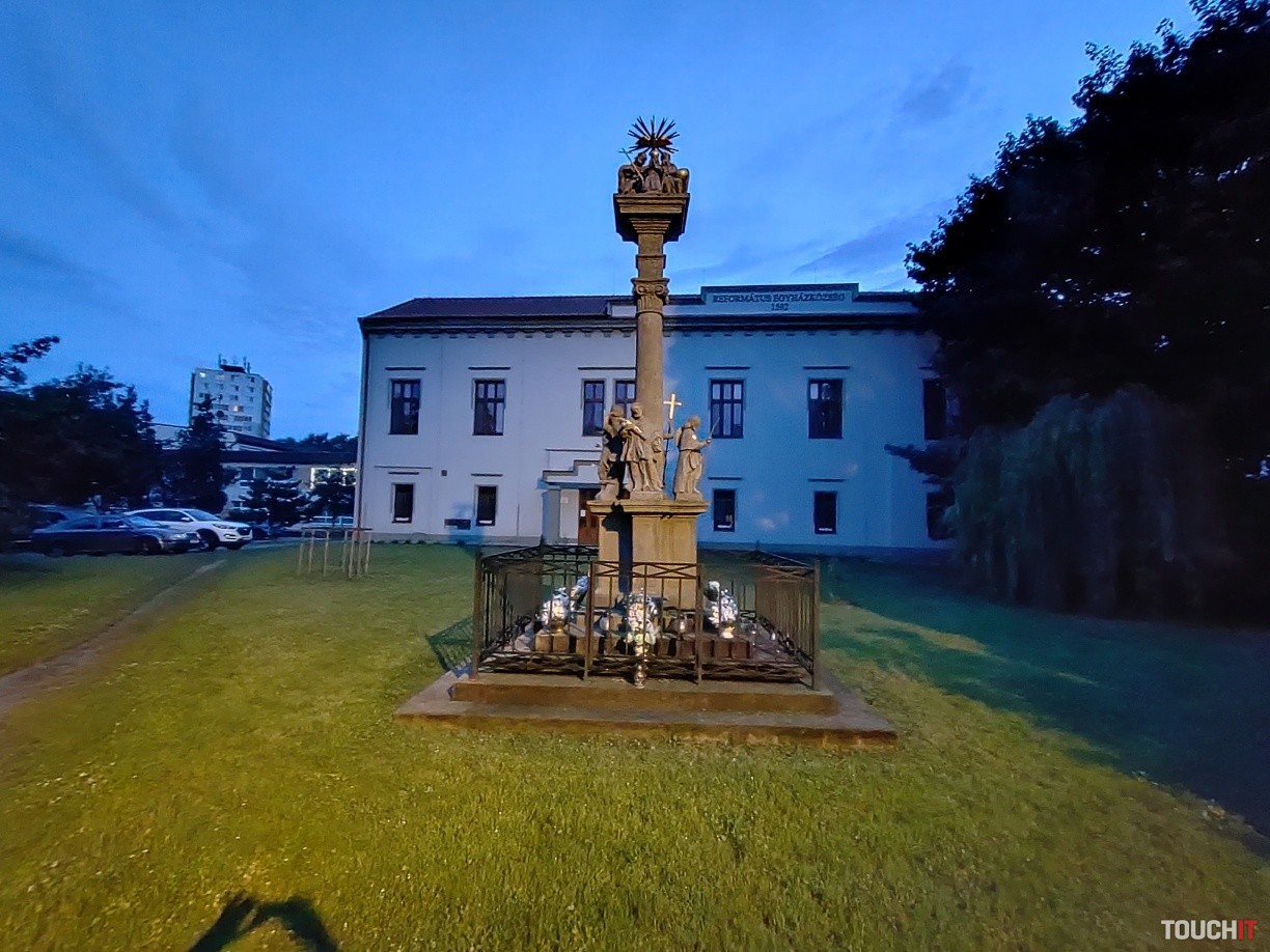 Vzadu sú tri fotoaparáty, z nich hlavný má rozlíšenie 64 Mpx a svetelnosť 1/1.79. K tomu je tu ešte 8 Mpx širokouhlý fotoaparát, ktorý využijete pri fotkách krajiny. Pri fotení takejto scény fotoaparát sám navrhuje, aby ste to skúsili so širokouhlý, fotoaparátom. Jeho uhol záberu je 119° a fotky z neho vyzerajú efektne.
