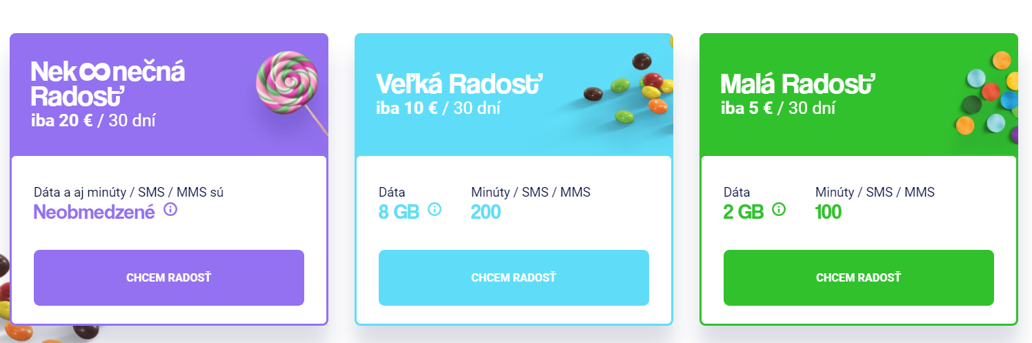 Tak napríklad cena za paušál Nekonečno sa dá znížiť až na 10 eur. V prípade najnižšieho paušálu nazvaného Malá Radosť, bude cena len 2,5 eur.